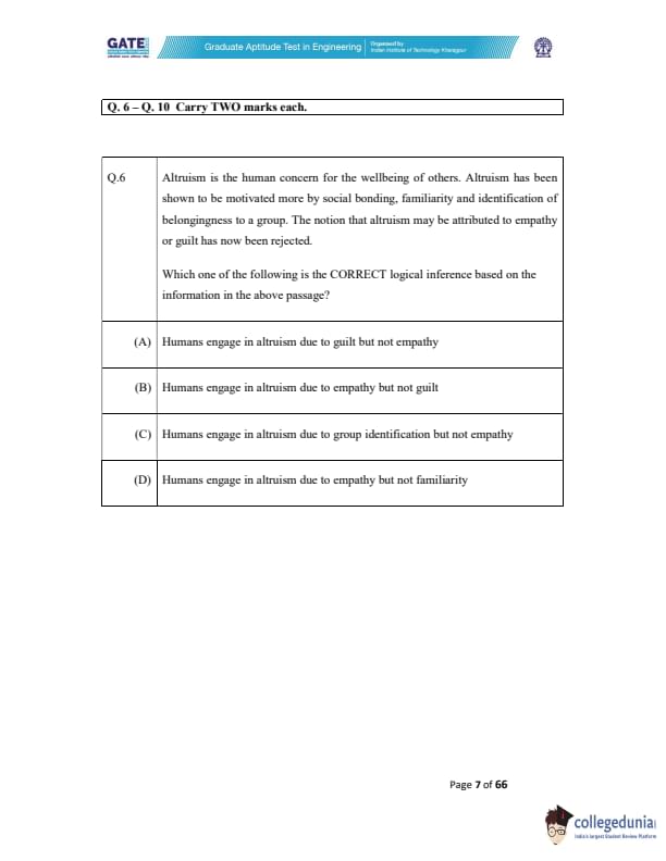 The correct logical inference based on the passage is Option (C), where altruism is motivated by group identification, not empathy. Quick Tip: When inferring logical conclusions from a passage, focus on the key information provided and eliminate options that contradict the main idea.