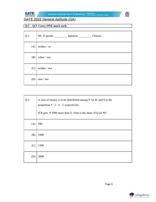 - There were more 31 numerical-type questions and 34 MCQs in GATE 2022 MN Question Paper.