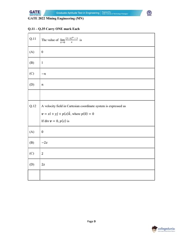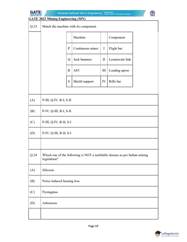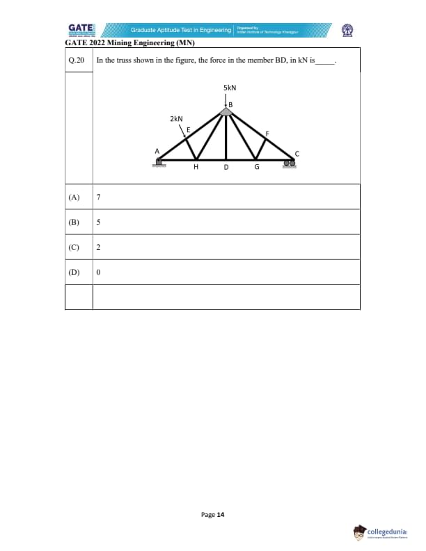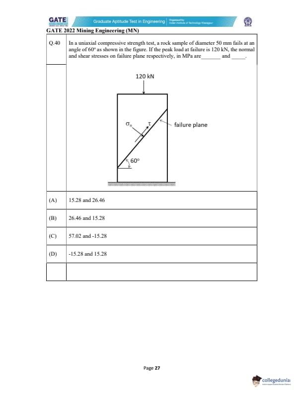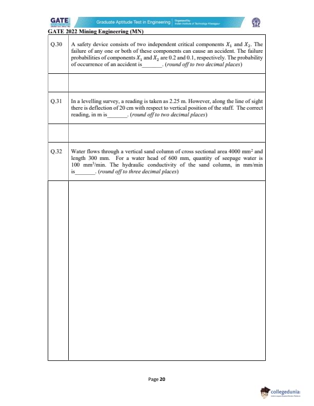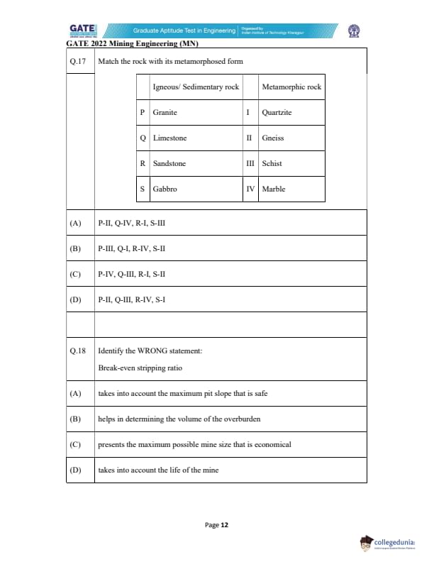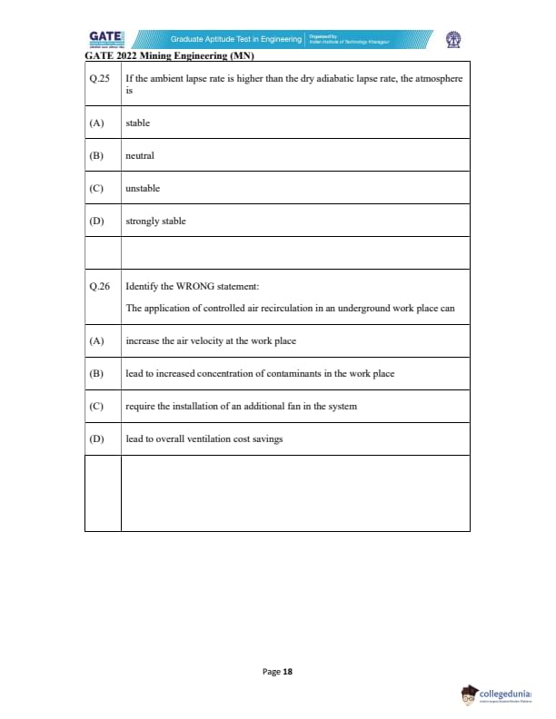 | GATE 2022 Mining Engineering (MN) Question Paper | Check Solutions |