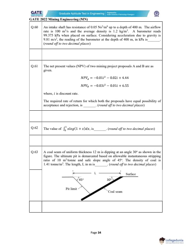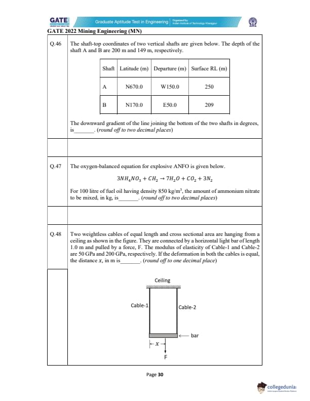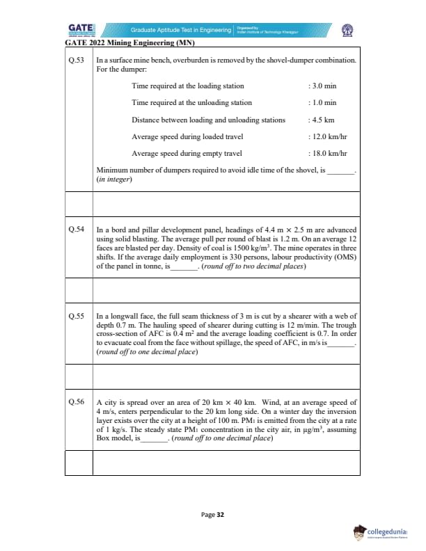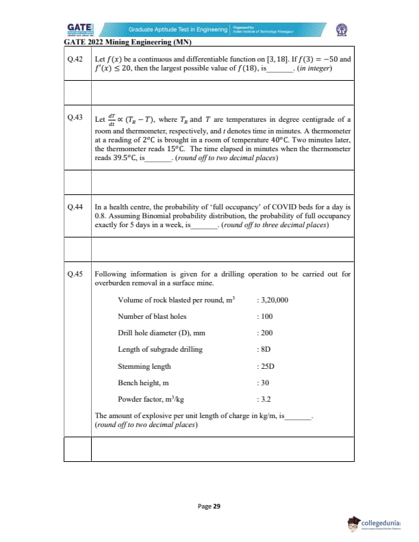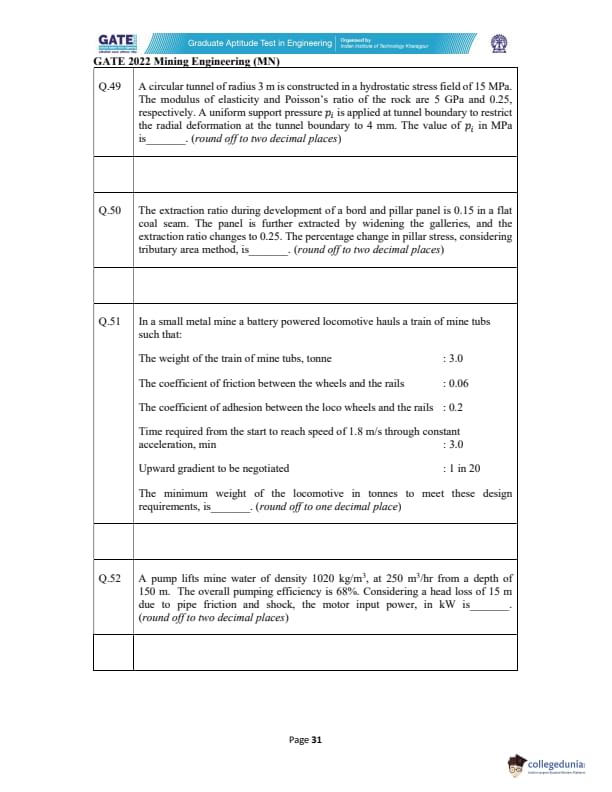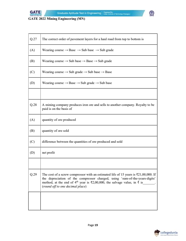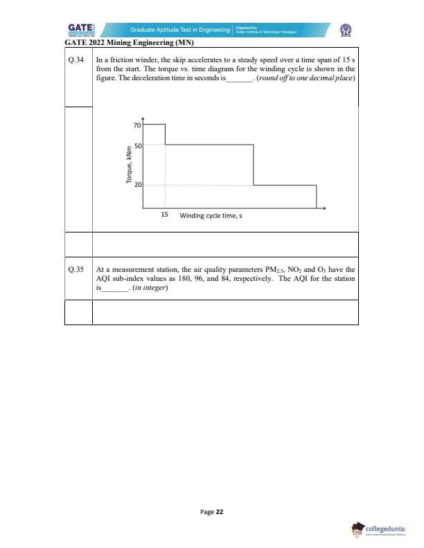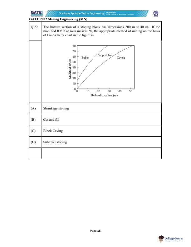 GATE 2022 Mining Engineering (MN) Question Paper with Solutions