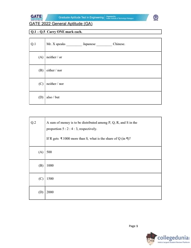 | GATE 2022 Question Papers | GATE 2021 Question Papers | GATE 2020 Question Papers |