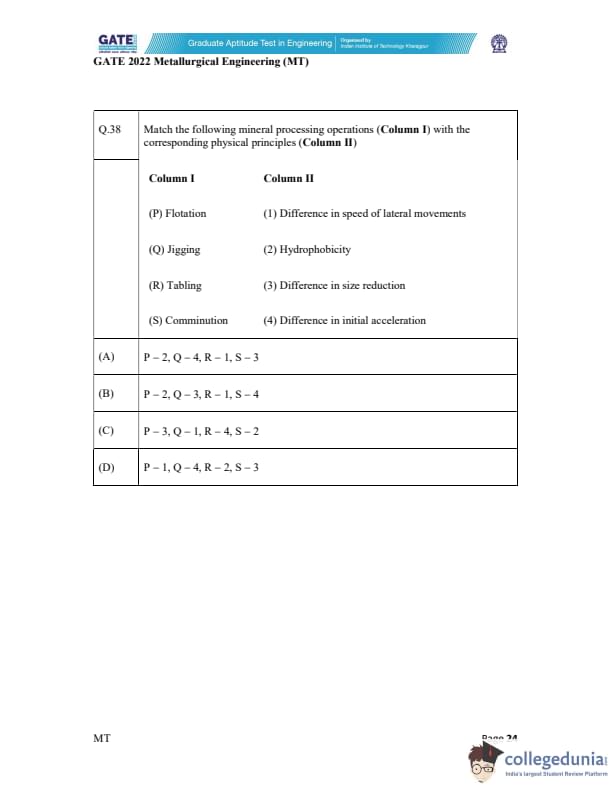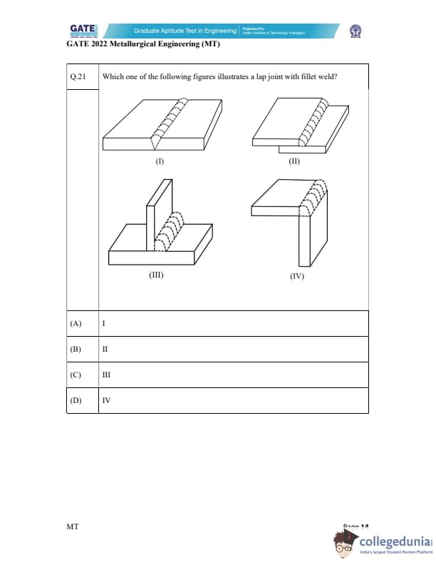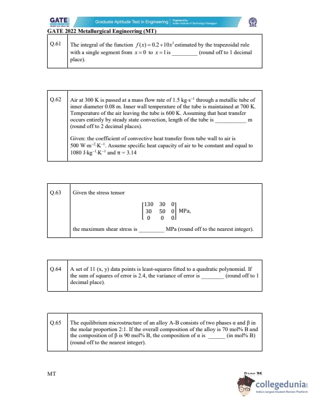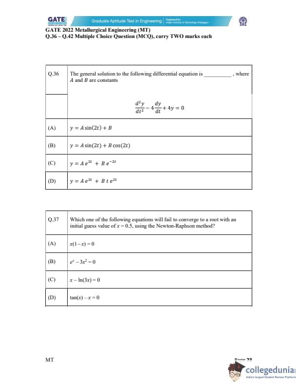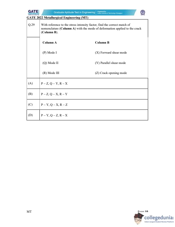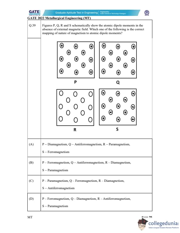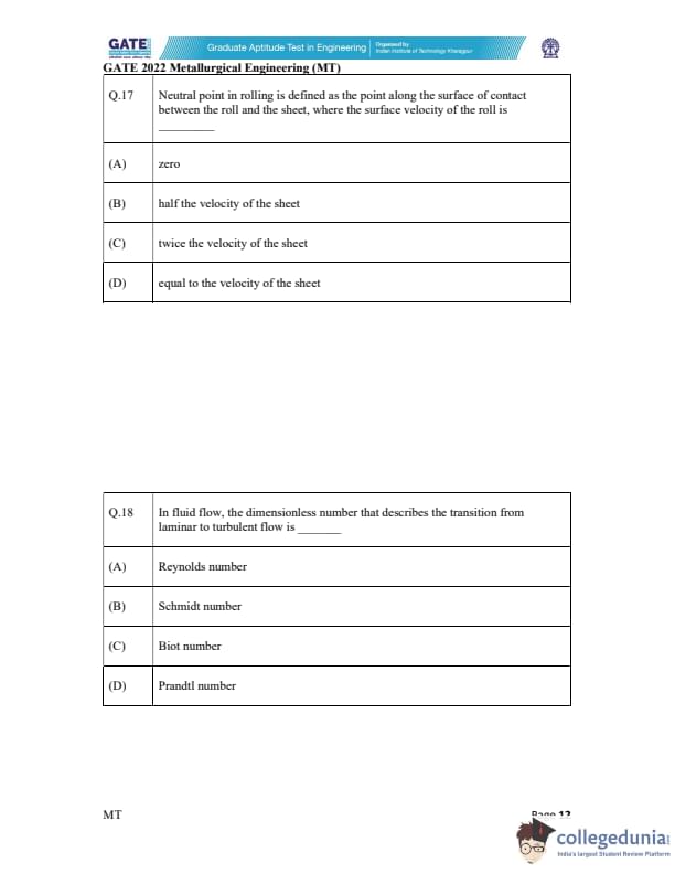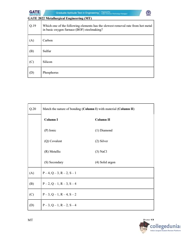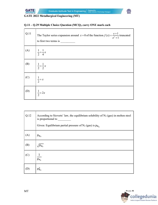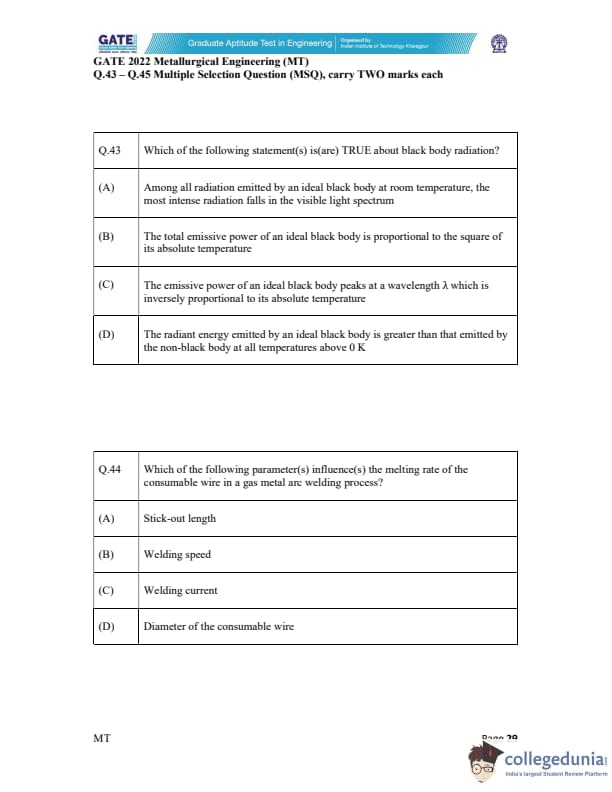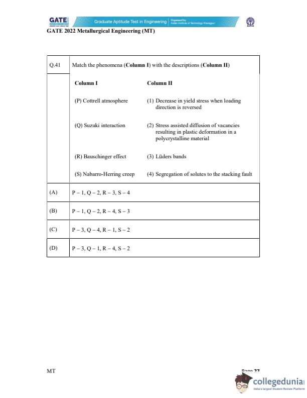 | GATE 2022 Metallurgical Engineering (MT) Question Paper | Check Solutions |