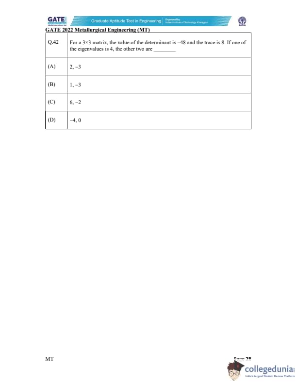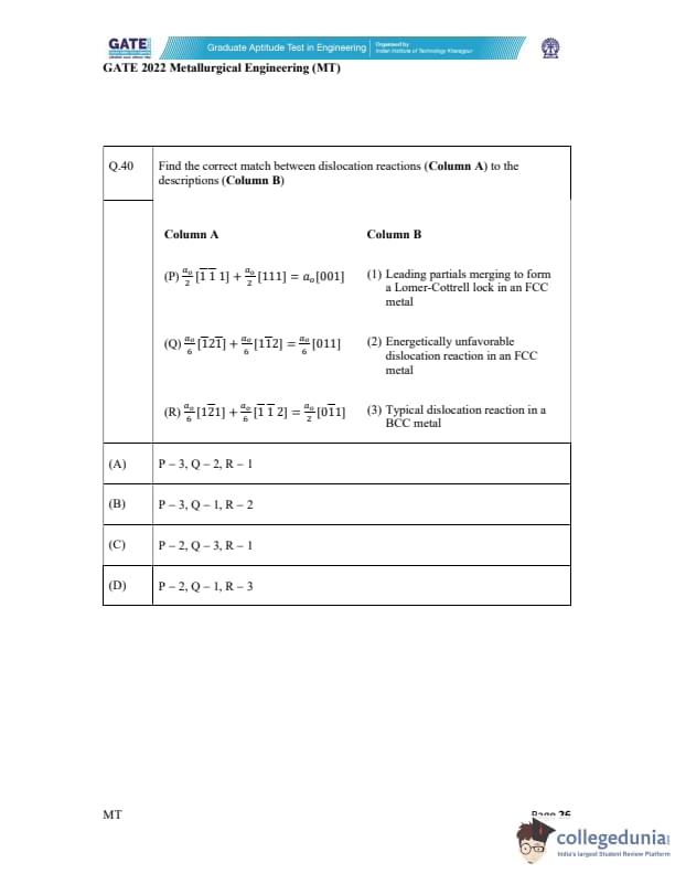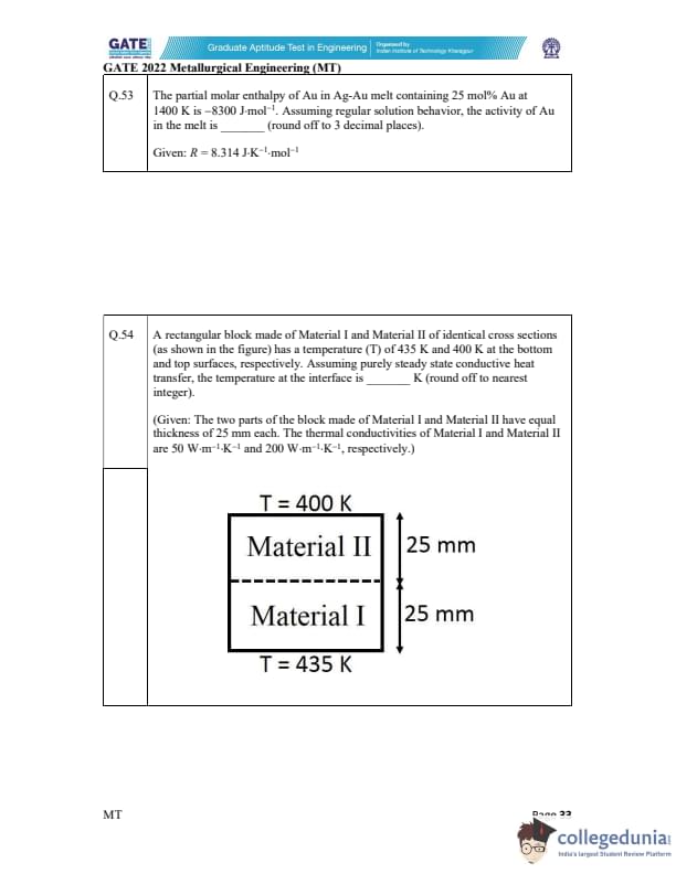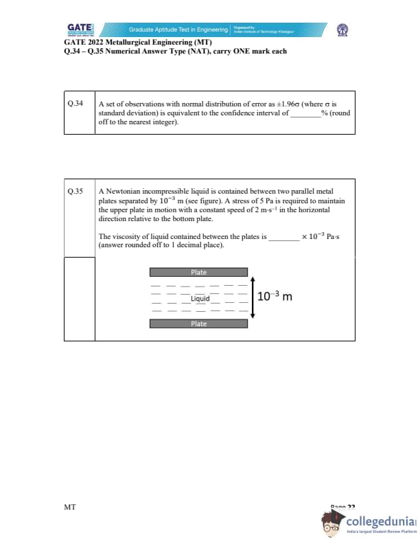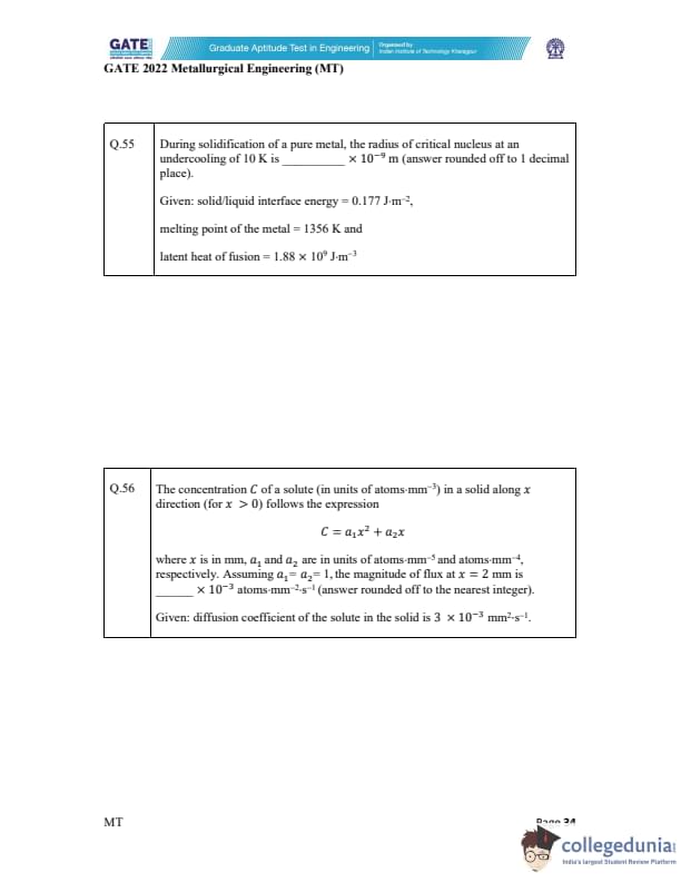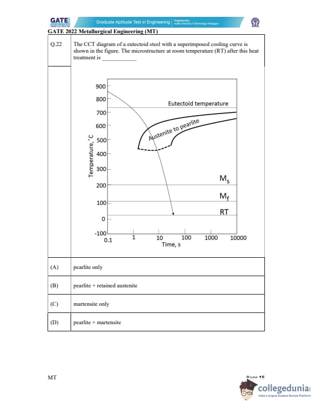 GATE 2022 Metallurgical Engineering (MT) Question Paper with Solutions