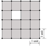- A \(2 \times 2\) square can be formed by selecting four unit squares. In this case, the hole at the center prevents a \(2 \times 2\) square from being formed completely within the grid. Thus, we can form 5 such \(2 \times 2\) squares.