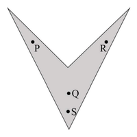 An art gallery engages a security guard to ensure that the items displayed are protected. The diagram below represents the plan of the gallery where the boundary walls are opaque. The location the security guard posted is identified such that all the inner space (shaded region in the plan) of the gallery is within the line of sight of the security guard.
