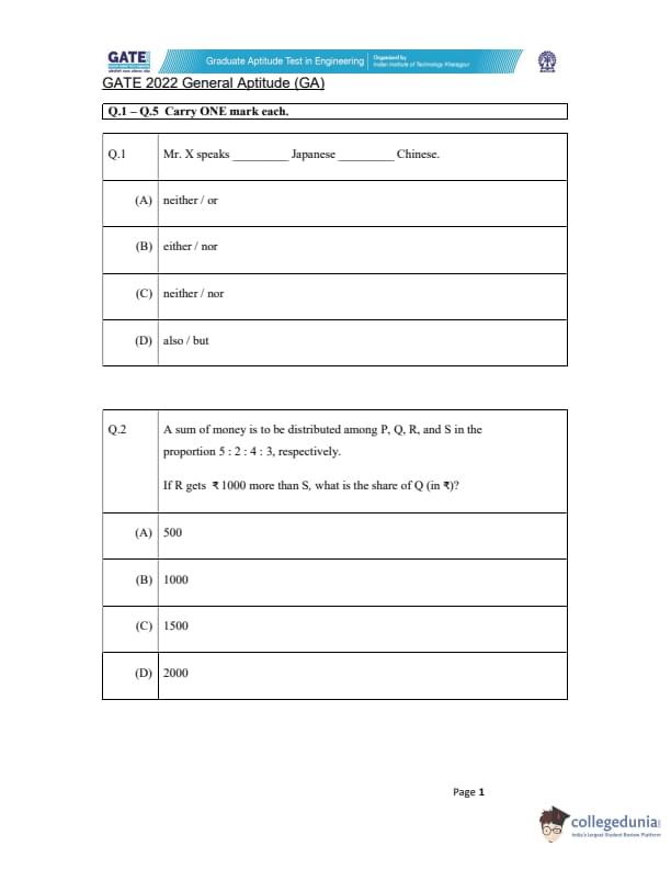| GATE 2022 Question Papers | GATE 2021 Question Papers | GATE 2020 Question Papers |