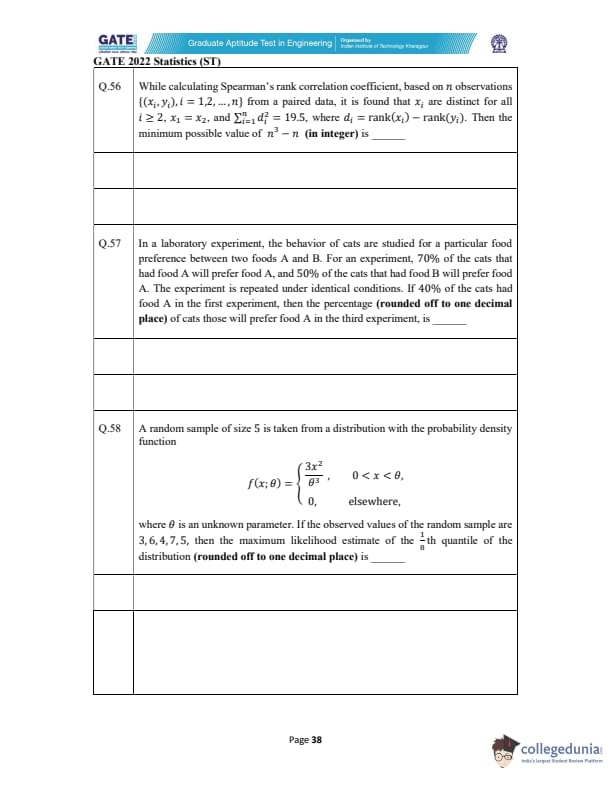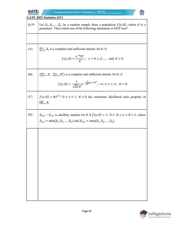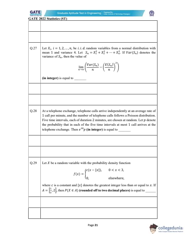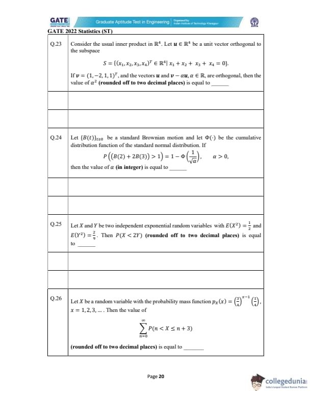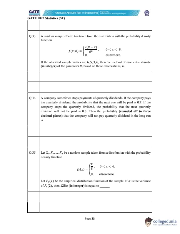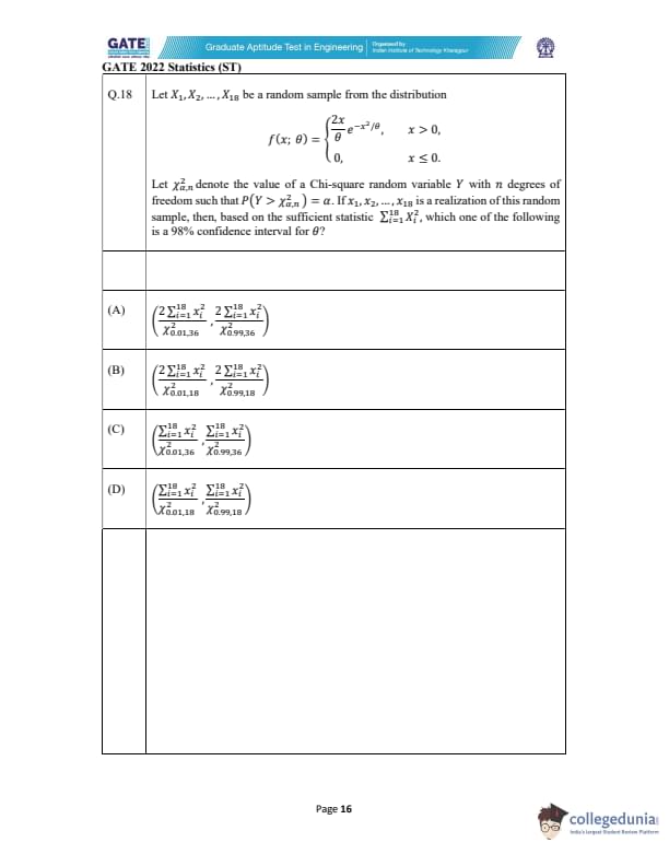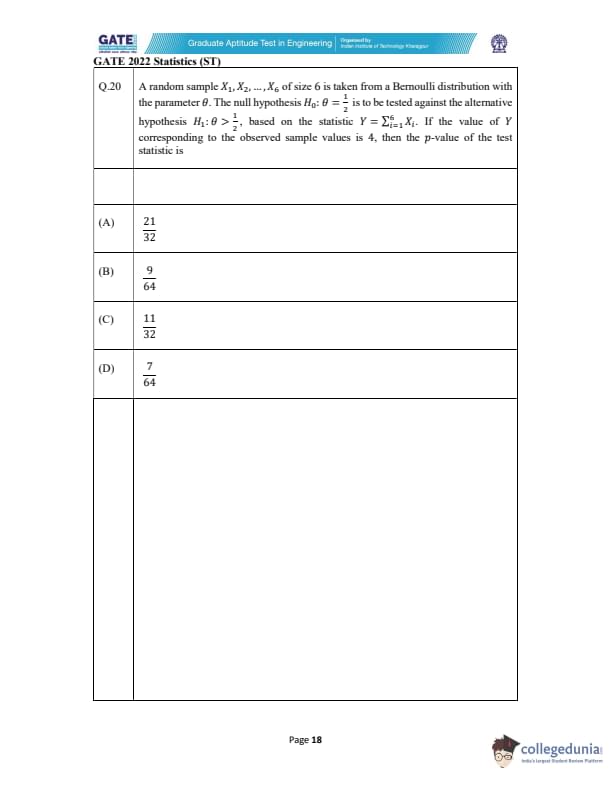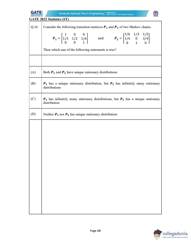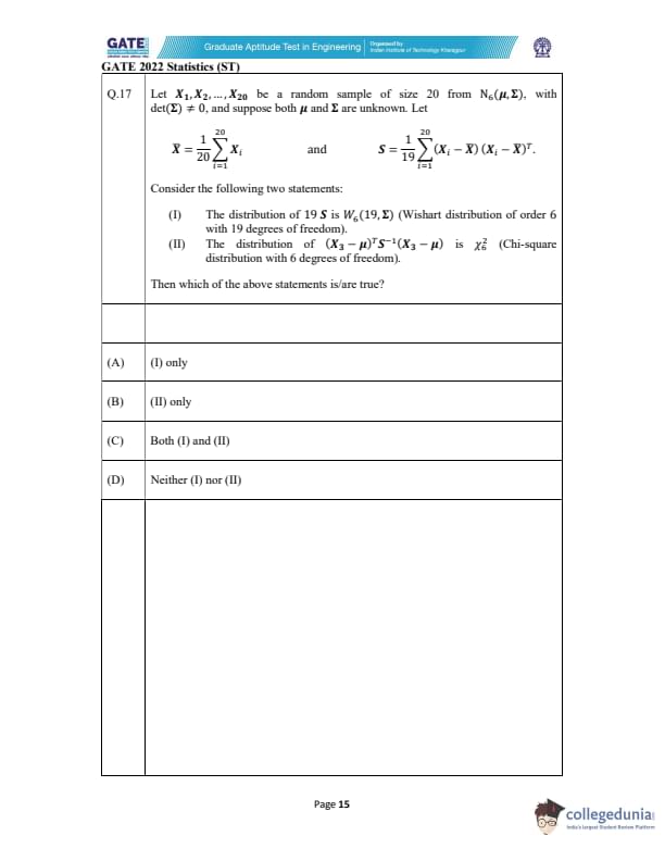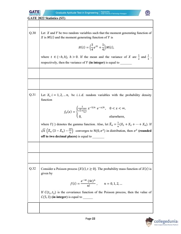 GATE 2022 Statistics (ST) Question Paper with Solutions
