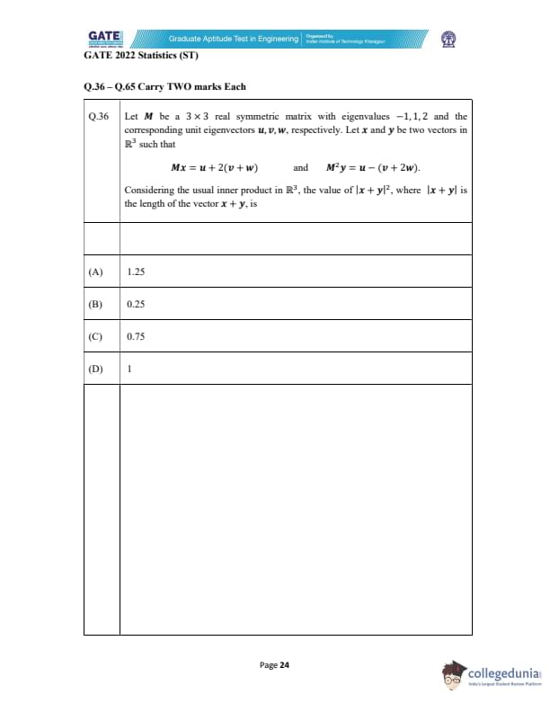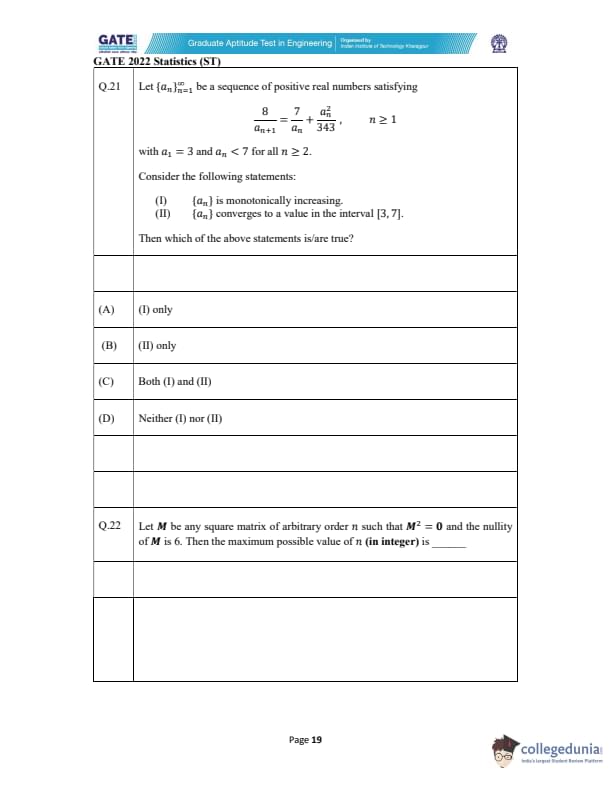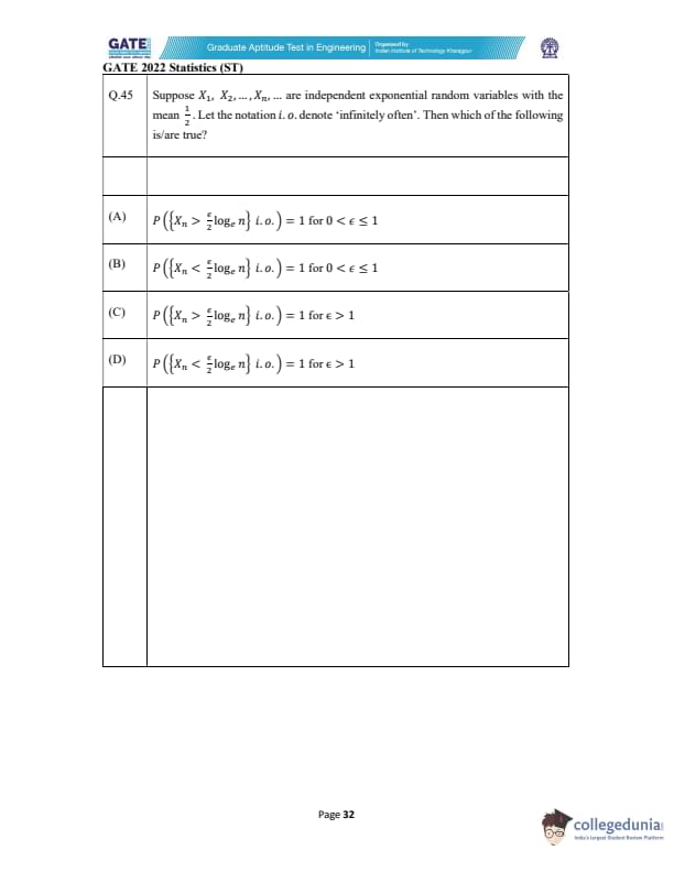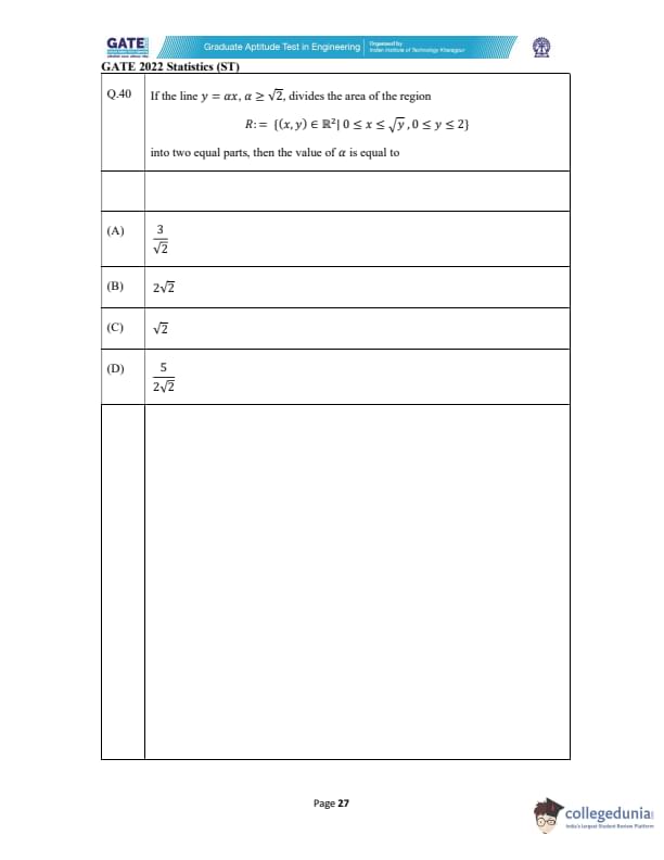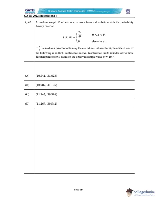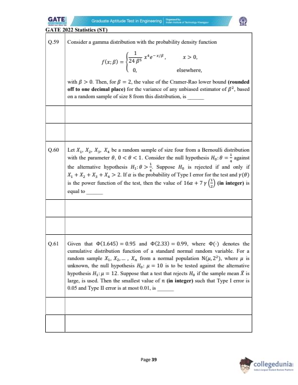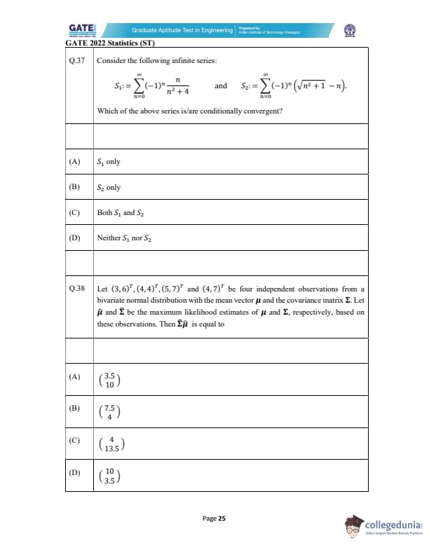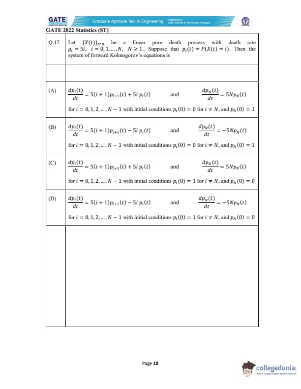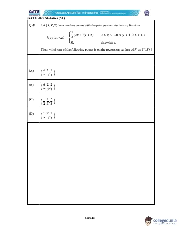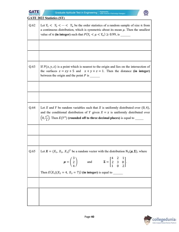 GATE 2022 Statistics (ST) Question Paper with Solutions