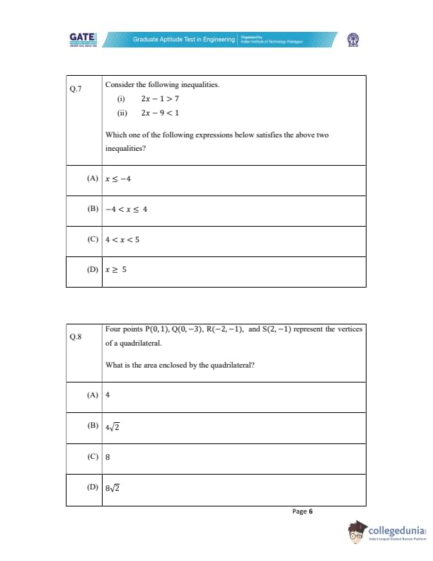 The correct option is (C) \( 4 < x < 5 \). Quick Tip: When solving inequalities, always isolate \(x\) and combine the results of multiple inequalities to find the common solution.