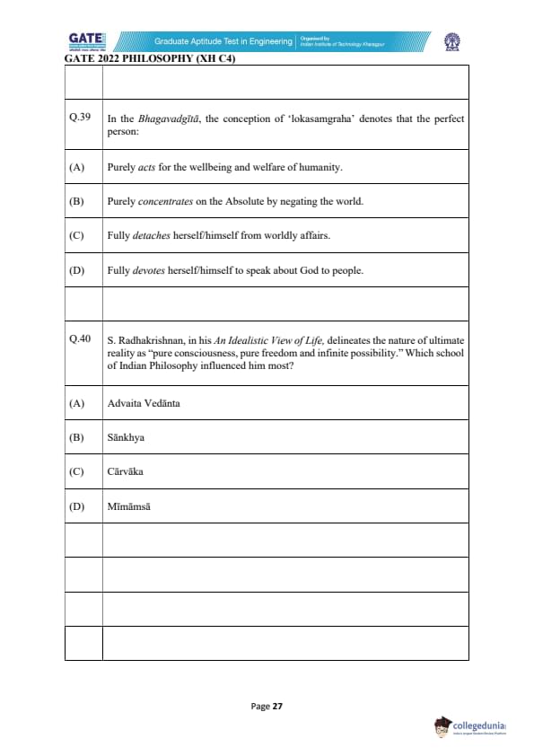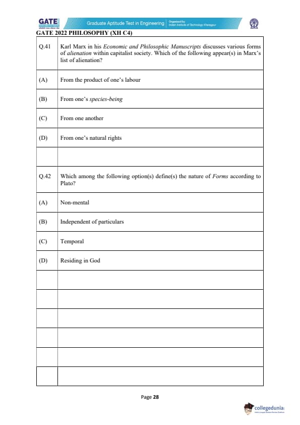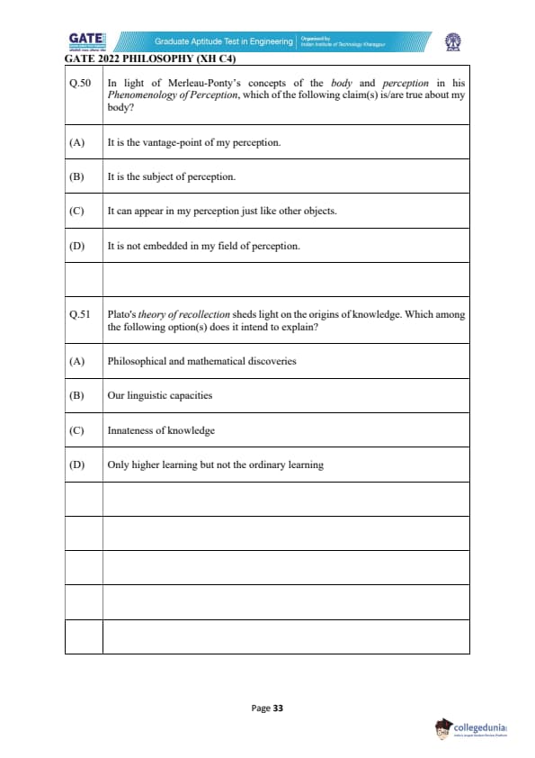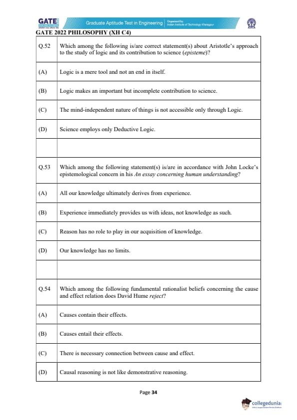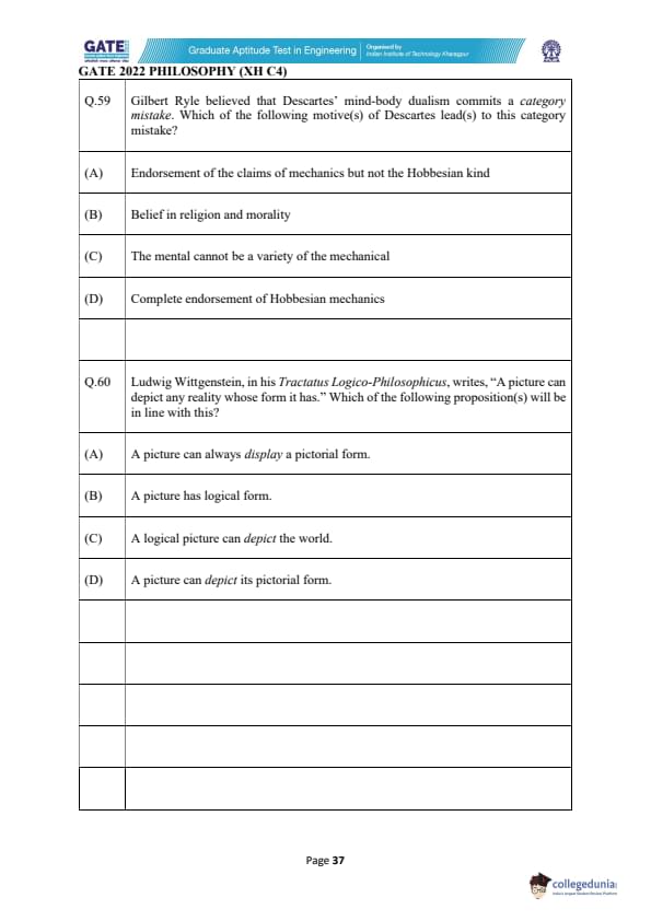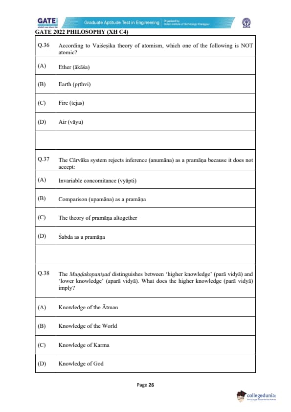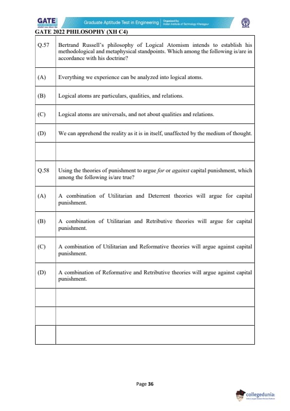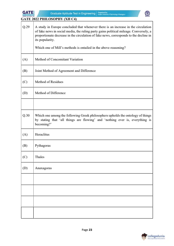 | GATE 2022 Humanities and Social Sciences - Philosophy (XH-C4) Question Paper | Check Solutions |