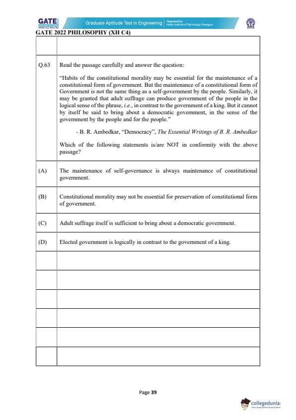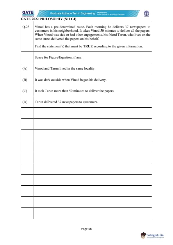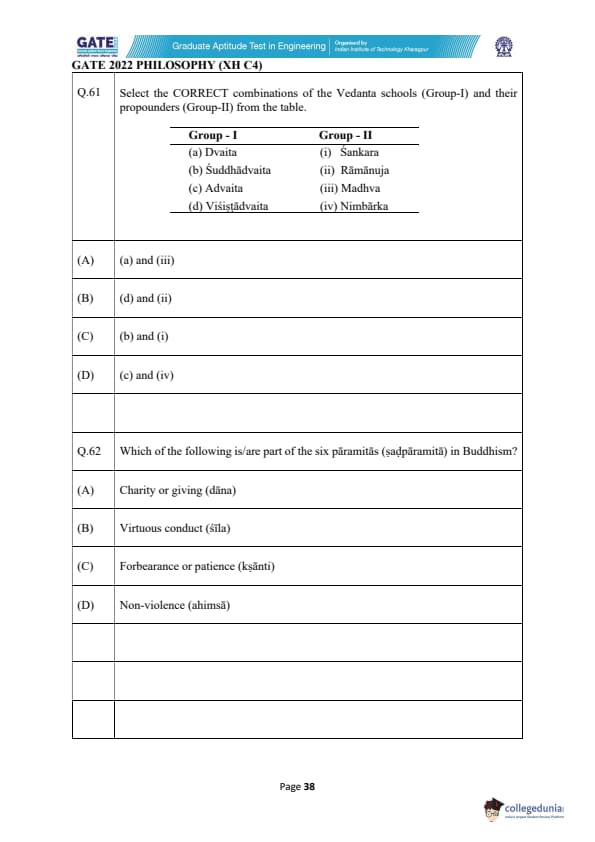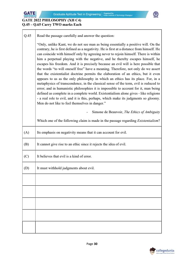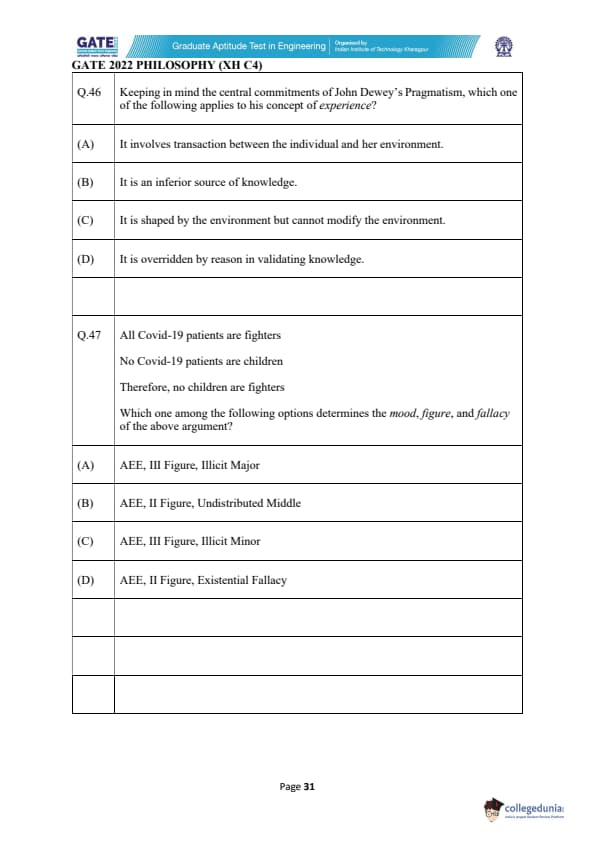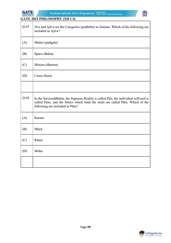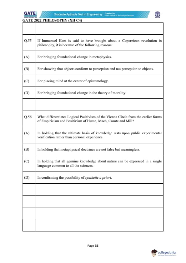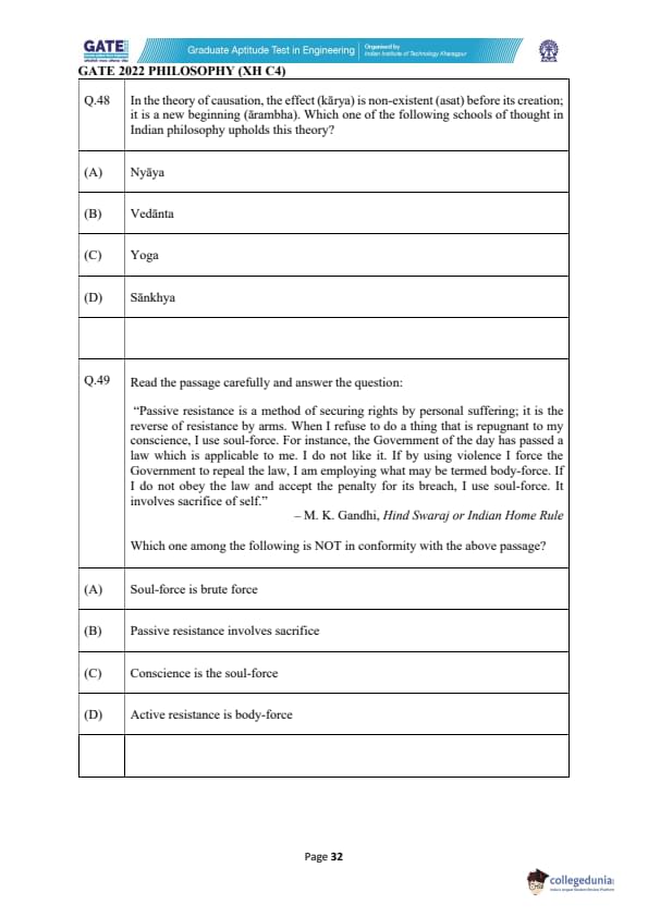 | GATE 2022 Humanities and Social Sciences - Philosophy (XH-C4) Question Paper | Check Solutions |