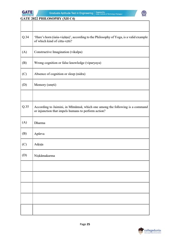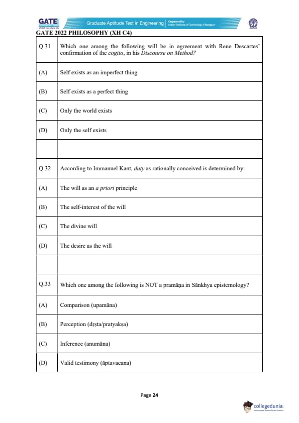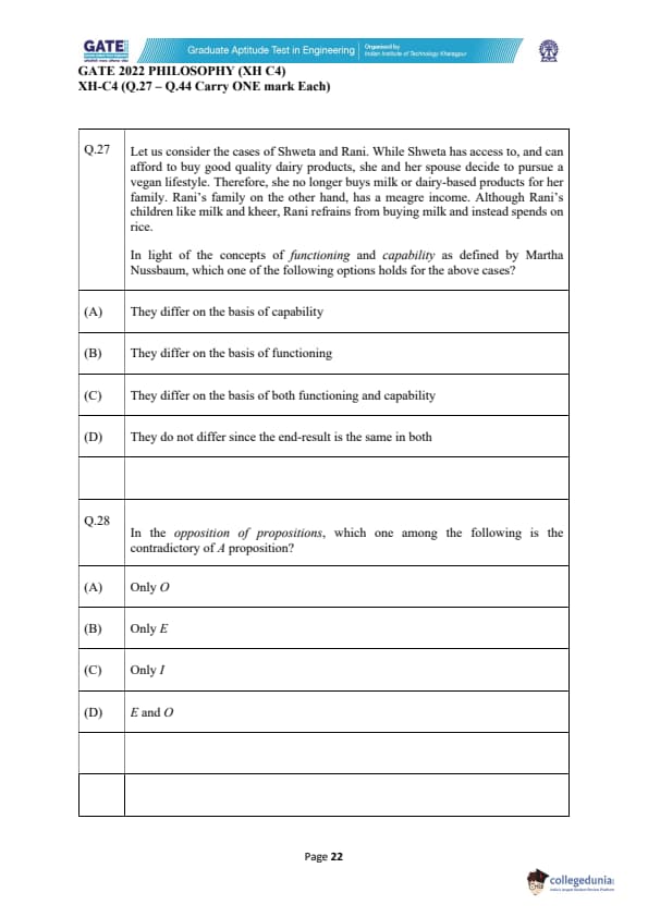 GATE 2022 Humanities and Social Sciences - Philosophy (XH-C4) Question Paper with Solutions