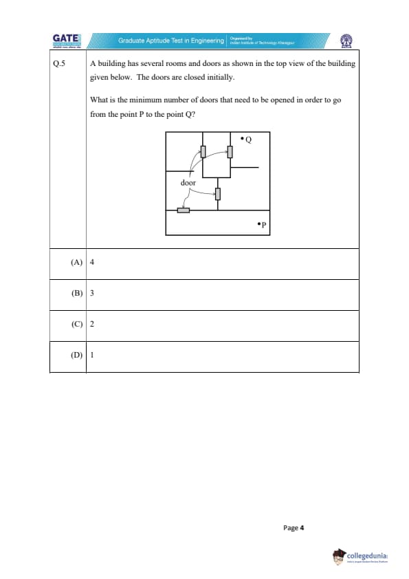 Quick Tip: In problems involving paths through buildings or networks, always look for the shortest route by considering the number of obstacles (like doors) that need to be overcome. Sometimes drawing the diagram helps in visualizing the best path.