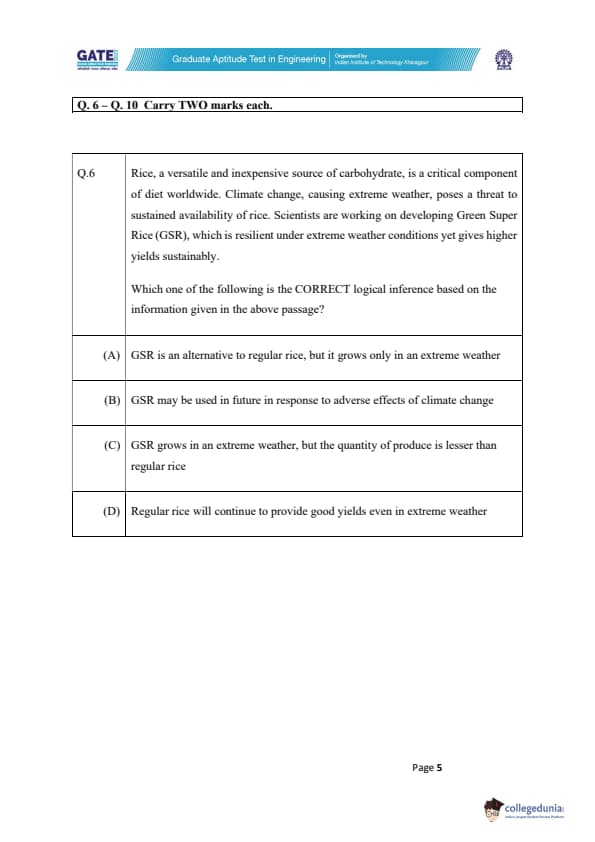 - Option (D): Regular rice will continue to provide good yields even in extreme weather.