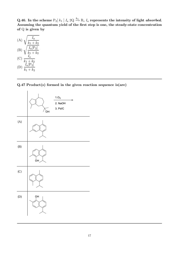 Step 4: Hence \(X\) predominantly shows Norrish II, while \(Y\) undergoes Norrish I \(\Rightarrow\) option (B).