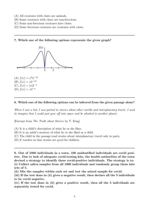 Thus, the correct representation is \(f(x) = x^2 2^{-|x|}\). Quick Tip: When identifying graphs: Check symmetry (even/odd functions). Verify behavior near \(x=0\). Analyze growth/decay for large \(|x|\). These help quickly eliminate wrong options.
