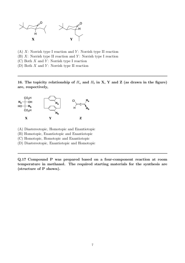 Step 4: Collecting: \(X\) homotopic, \(Y\) enantiotopic, \(Z\) enantiotopic \(\Rightarrow\) option (B).