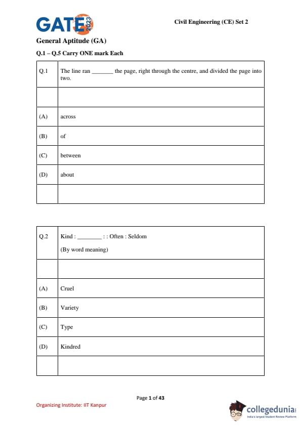 | Particulars | GATE 2023 CE Paper Analysis Forenoon Session |