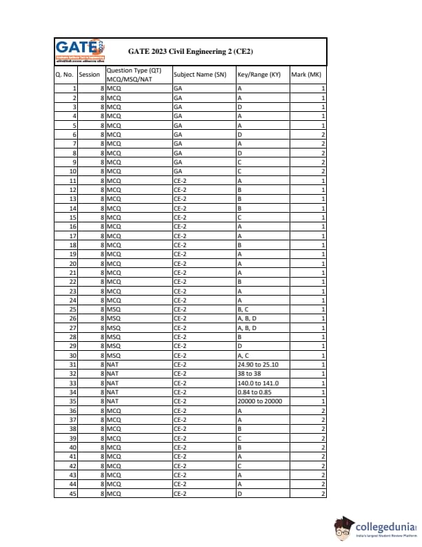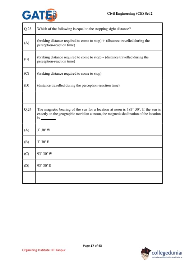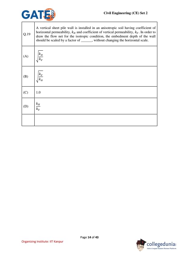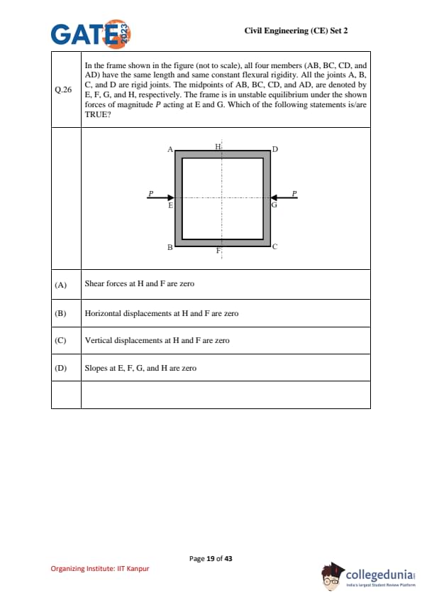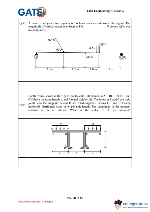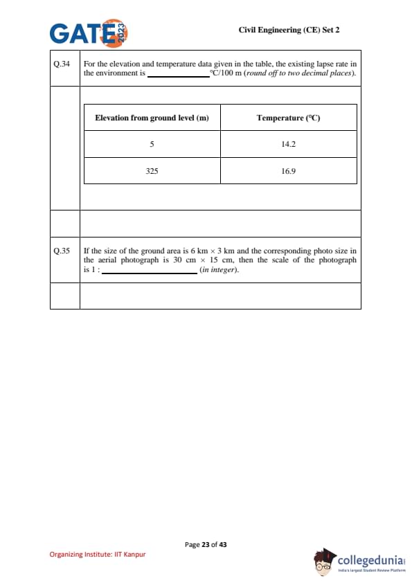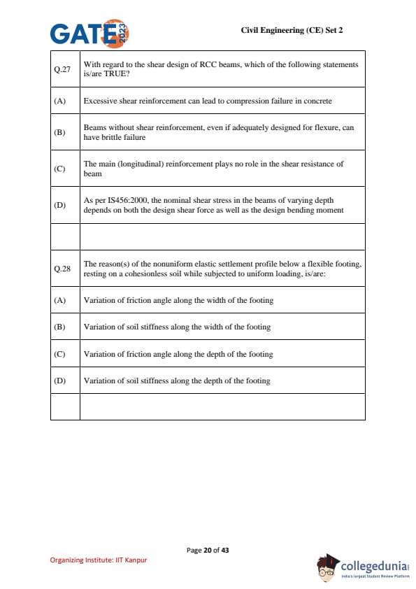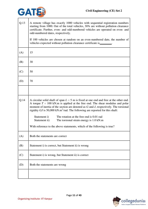 | GATE 2023 CE Slot 2 Question Paper with Solutions | Check Solutions |