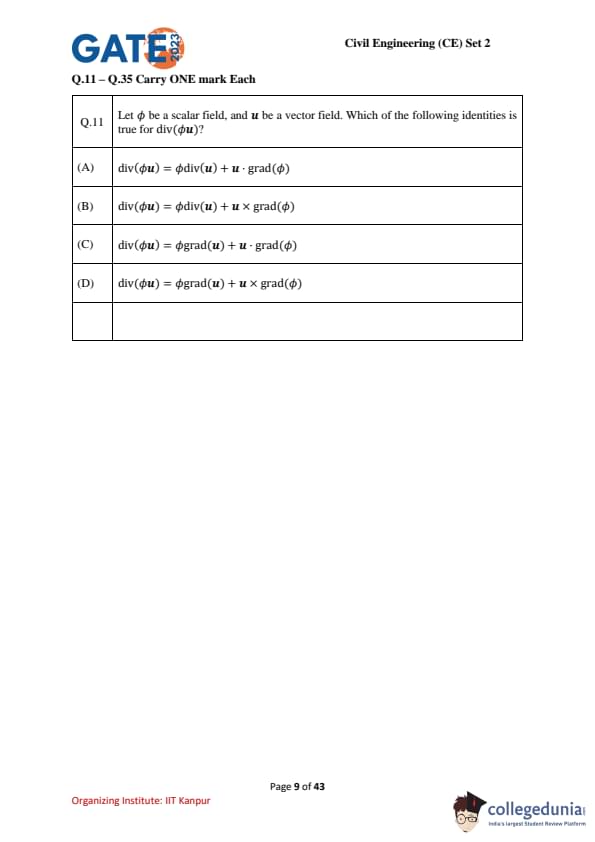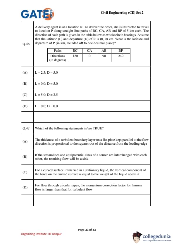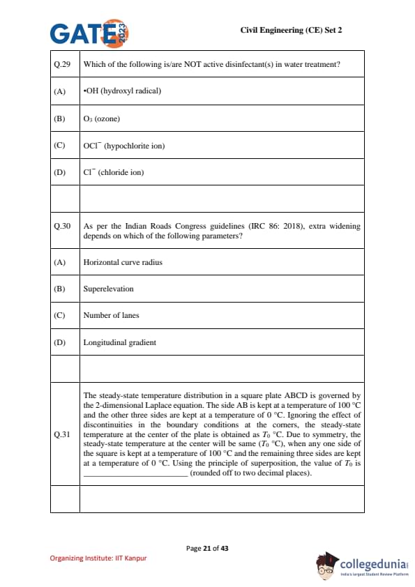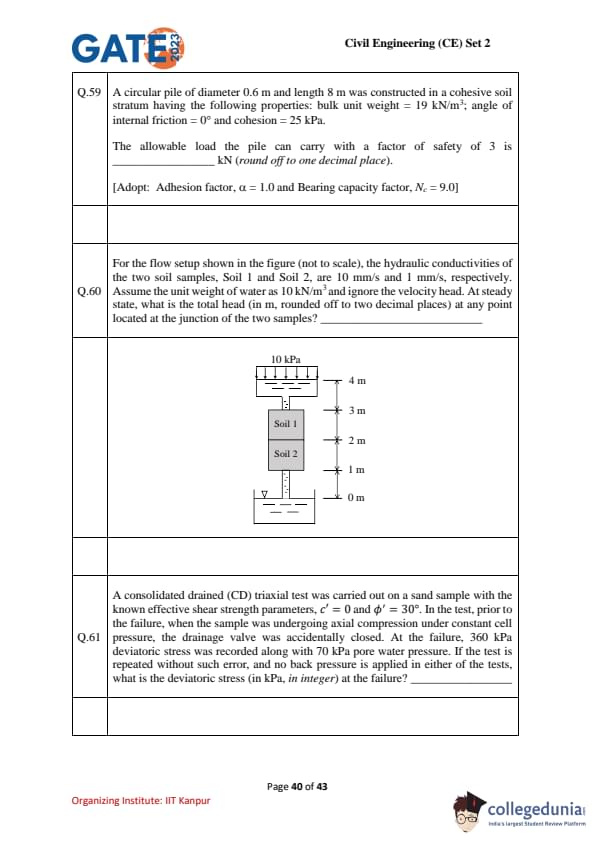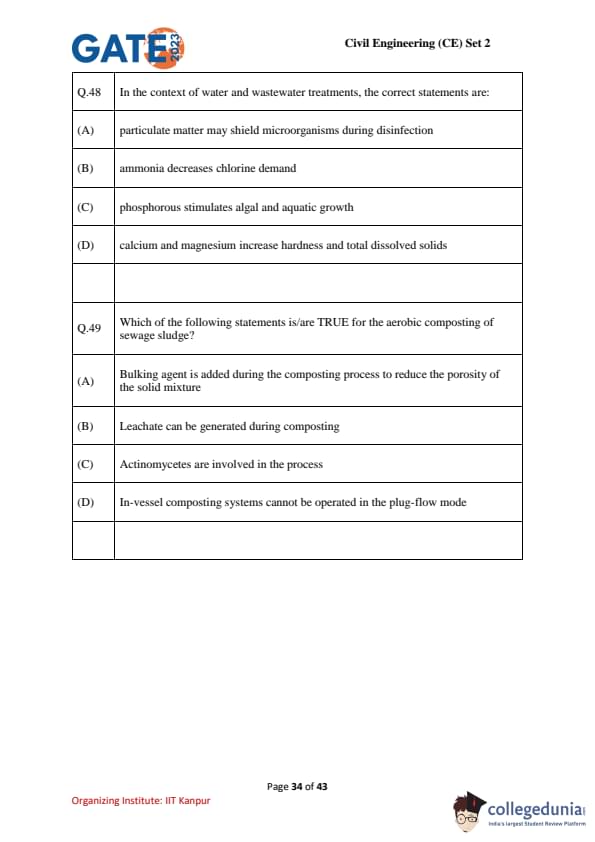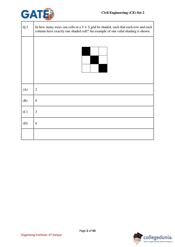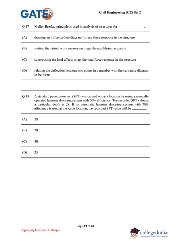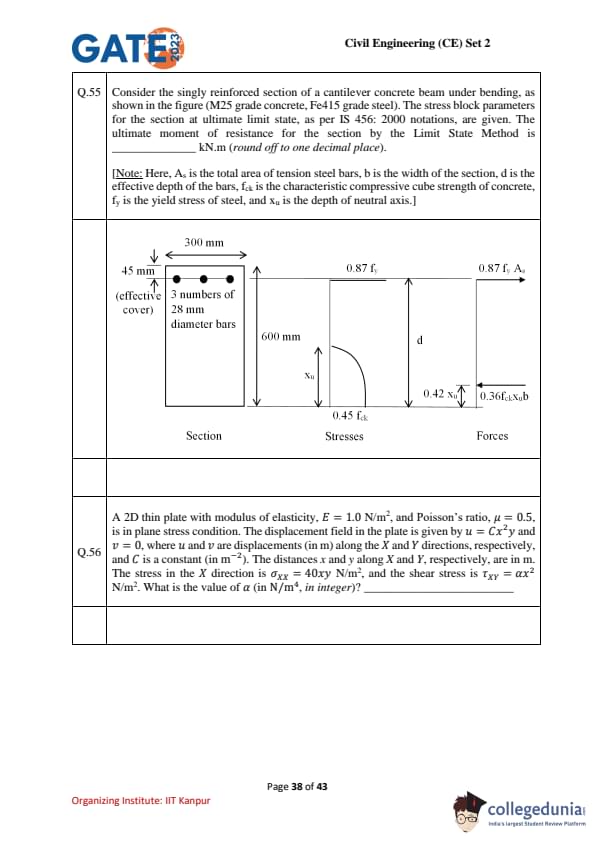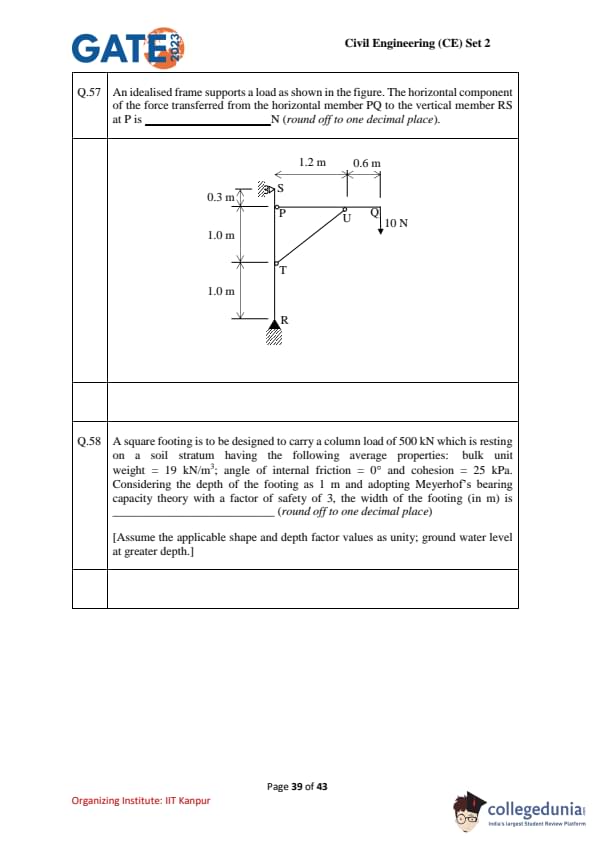 | GATE 2023 CE Slot 2 Question Paper with Solutions | Check Solutions |