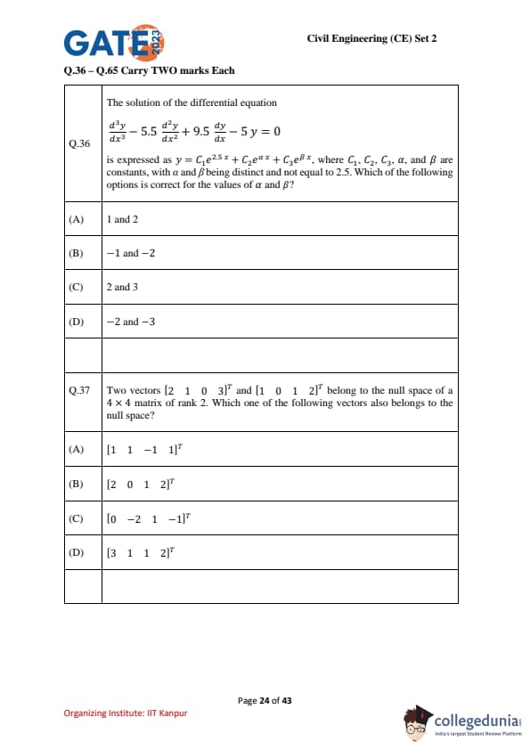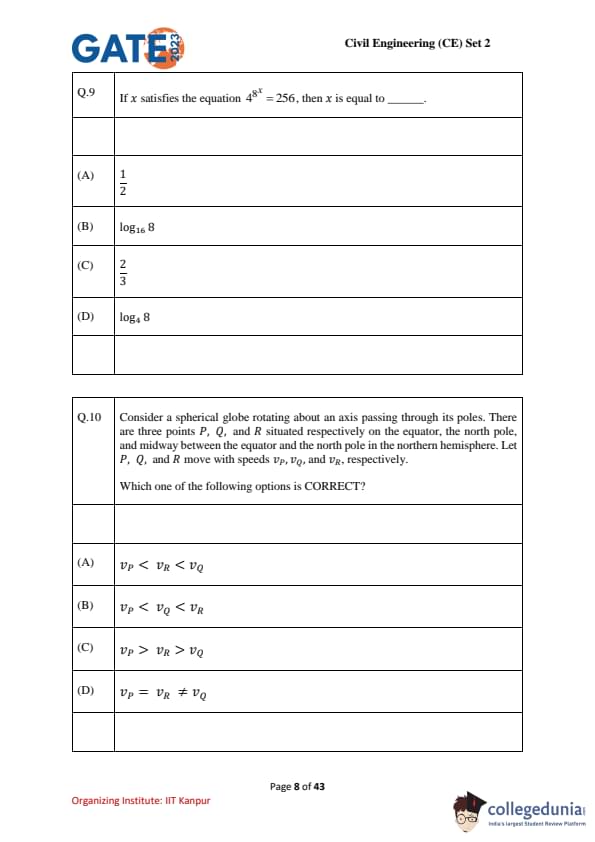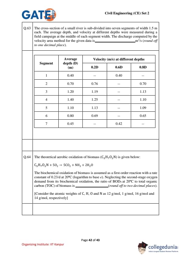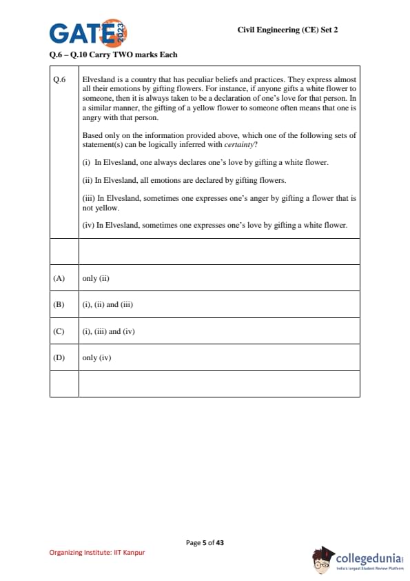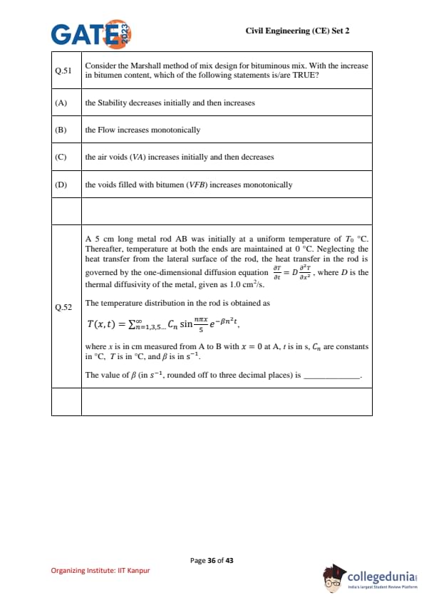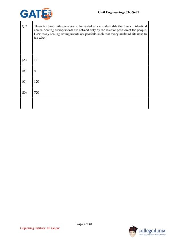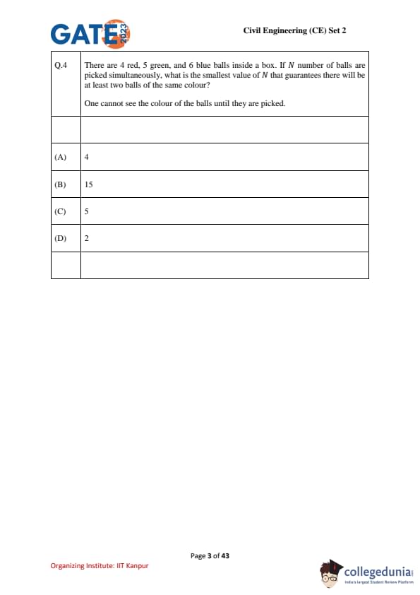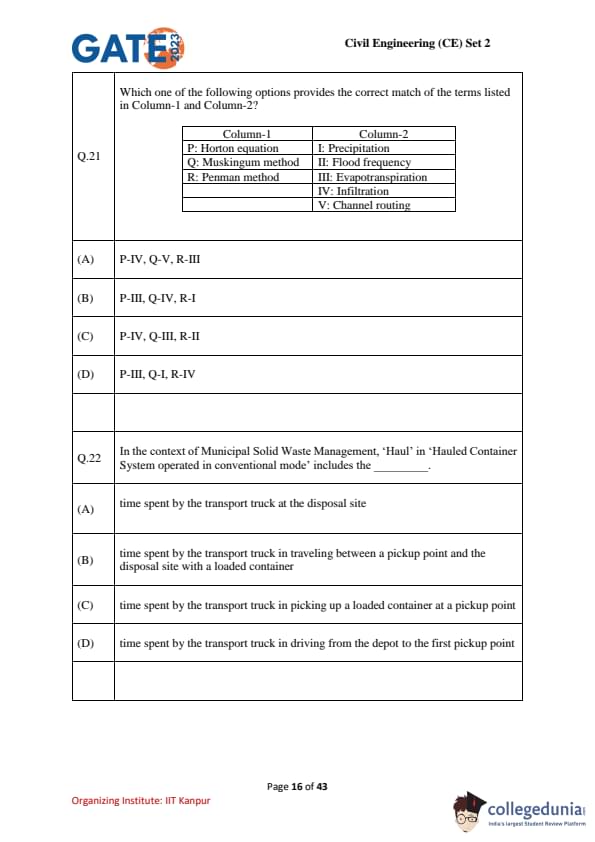 | GATE 2023 CE Slot 2 Question Paper with Solutions | Check Solutions |