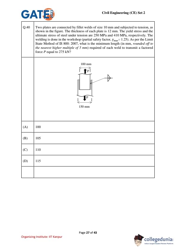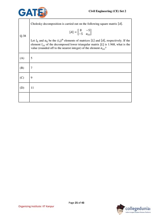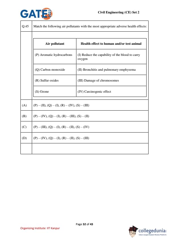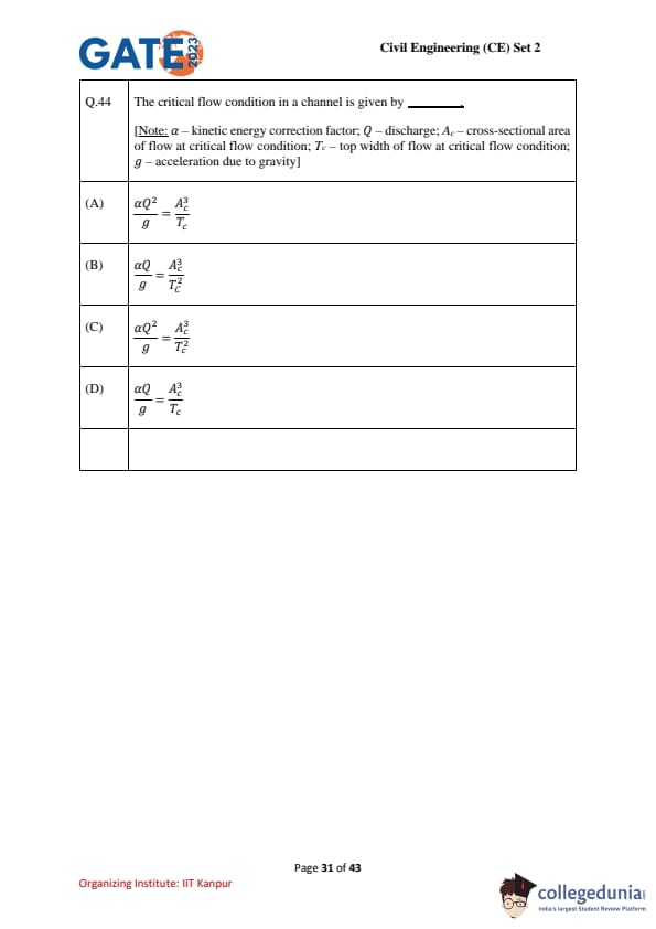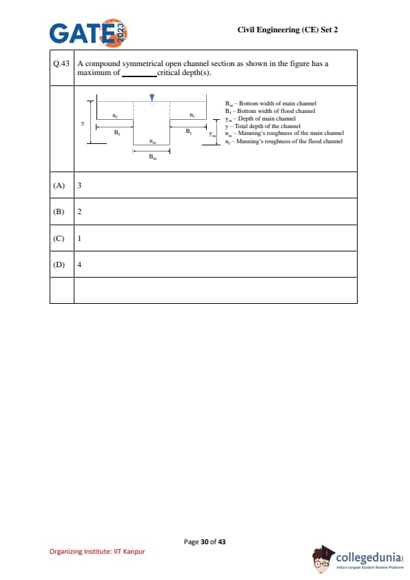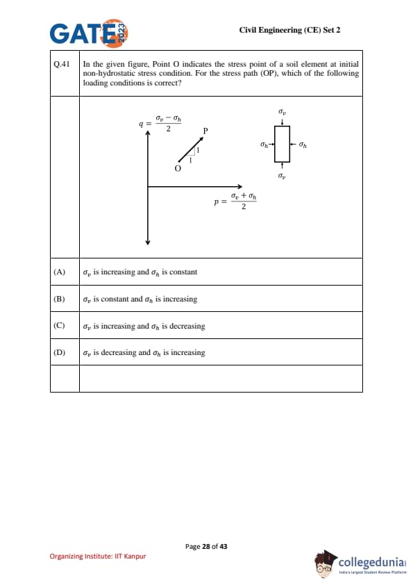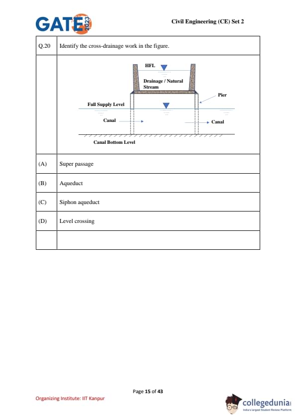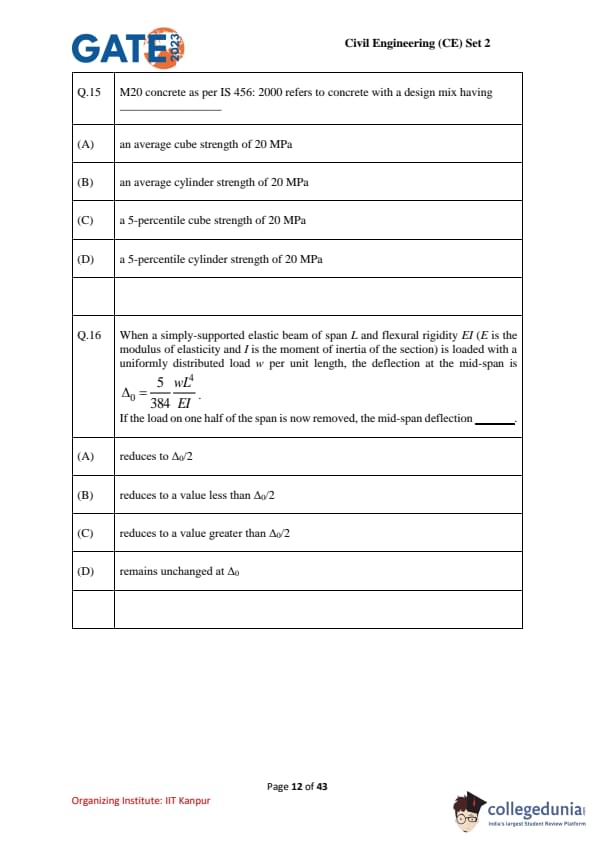 GATE 2023 Civil Engineering Question Paper PDF shift 2 is now available here for download. IIT Kanpur has successfully conducted GATE 2023 Civil Engineering exam on February 12, 2023 in the Afternoon Session from 02:30 PM to 05:30 PM. Students had to answer 65 questions in GATE 2023 Civil Engineering Question Paper for 100 marks. The question paper comprised 10 questions from the General Aptitude section and 55 questions from Engineering Mathematics and Core Discipline.