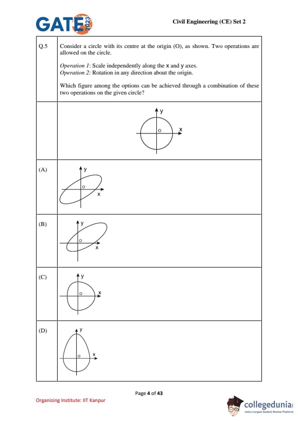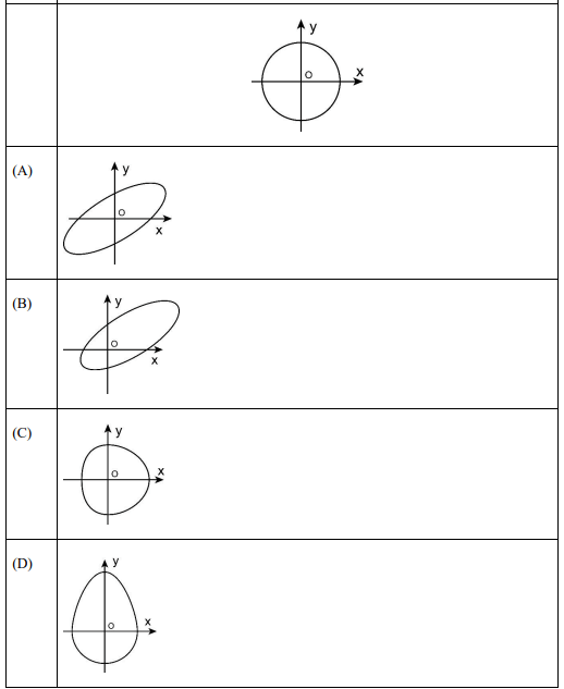 Thus, the correct answer is (A). Quick Tip: When scaling a circle independently along the x and y axes, you get an ellipse. Rotation does not affect the shape, only the orientation.