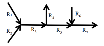 \[ \boxed{C_{R_7}=10.68\ kg/m^3} \] Quick Tip: For conservative pollutants at steady state, use mass conservation at each junction: