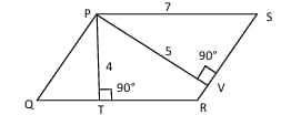 In the given figure, \(PQRS\) is a parallelogram with \(PS = 7 \,cm\), \(PT = 4 \,cm\) and \(PV = 5 \,cm\). What is the length of \(RS\) in cm? (The diagram is representative.)
