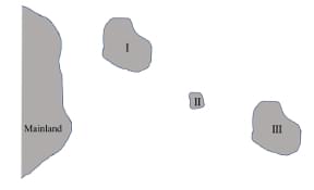 Islands I, II, and III lie off a mainland coast (see figure). Which statement about species richness is consistent with the theory of island biogeography?