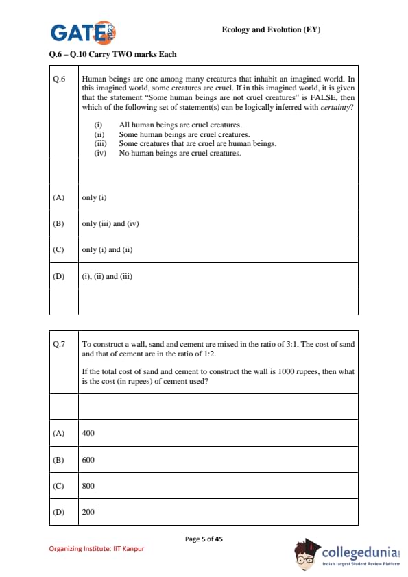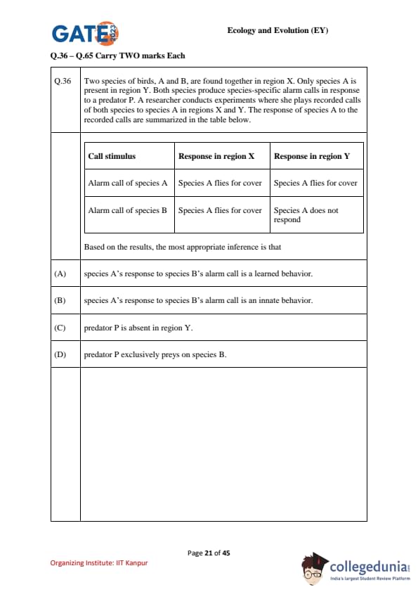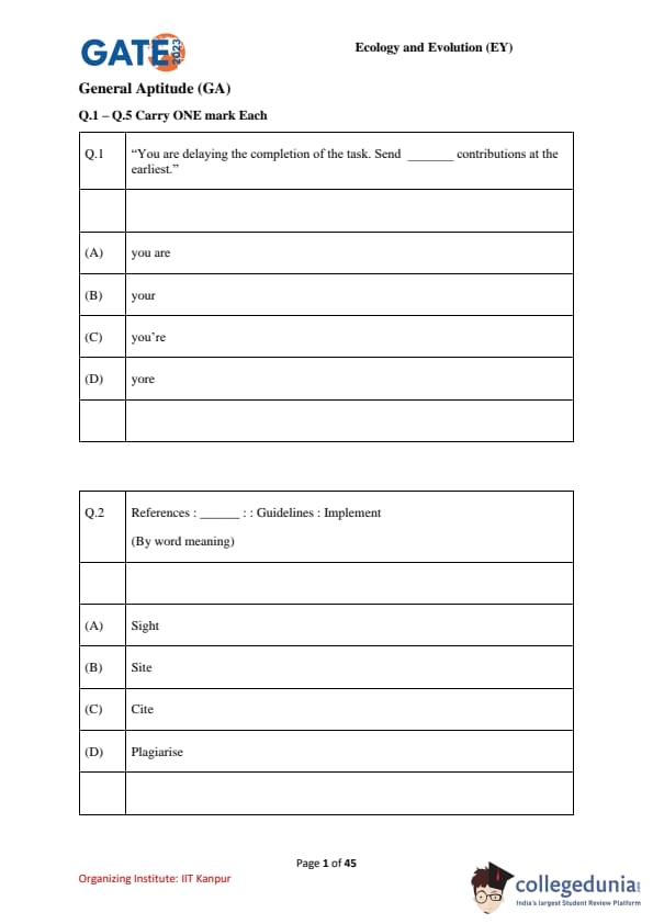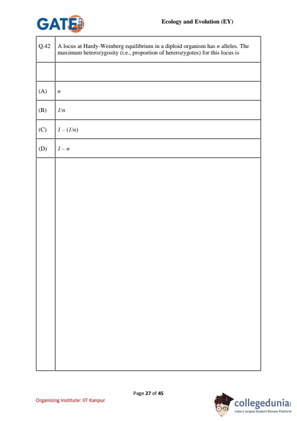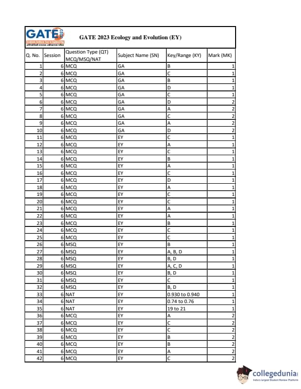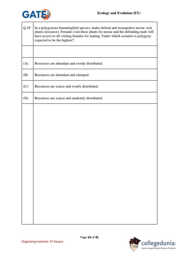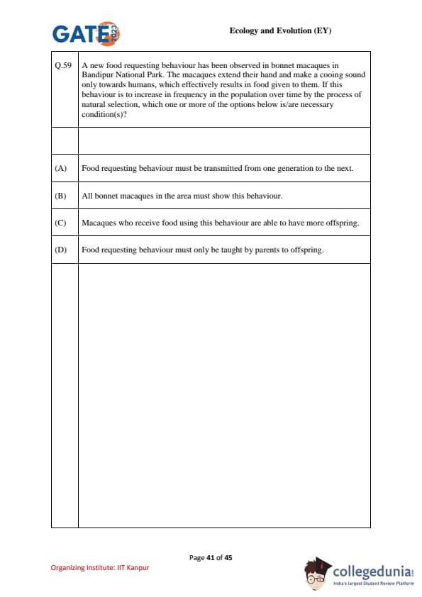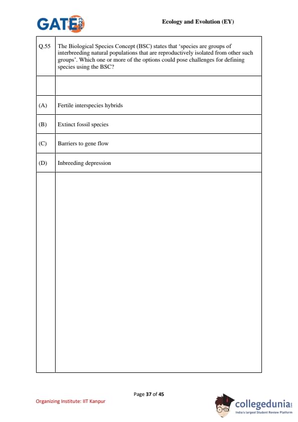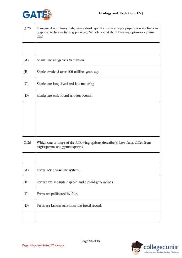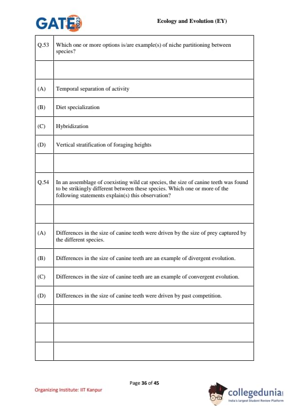 | Previous Year GATE Ecology and Evolution Question Papers | GATE 2023 Ecology and Evolution Paper Analysis |
