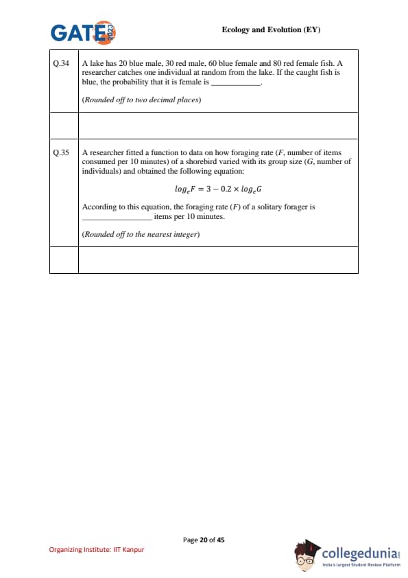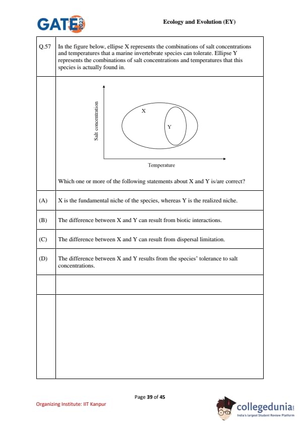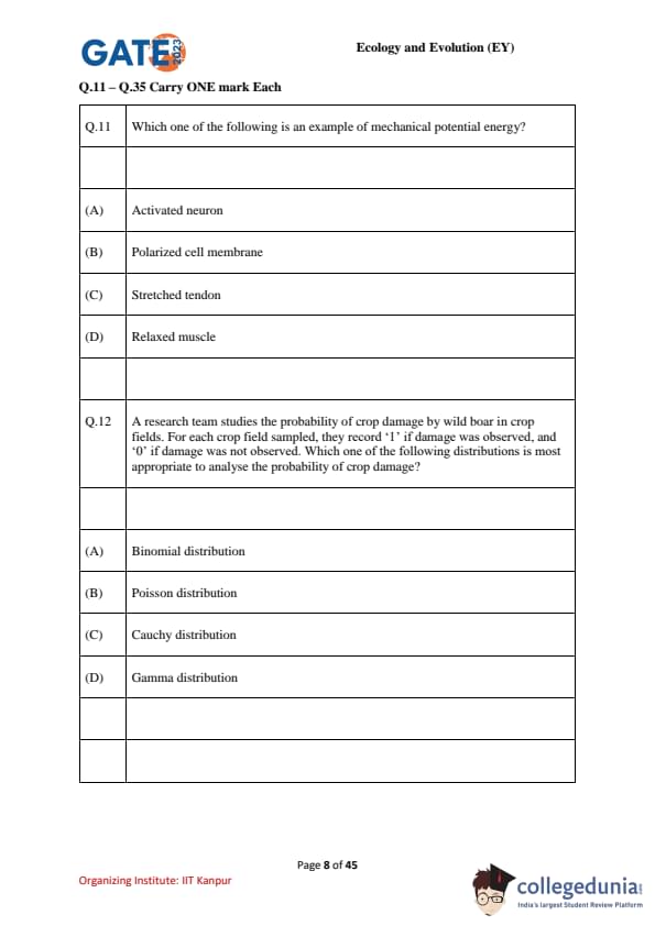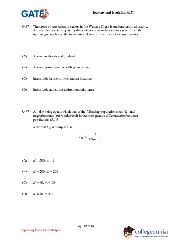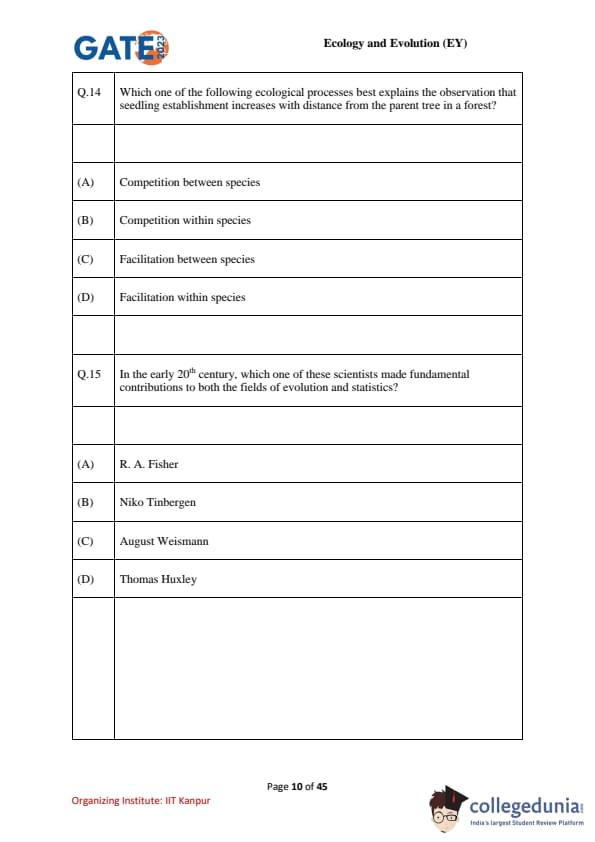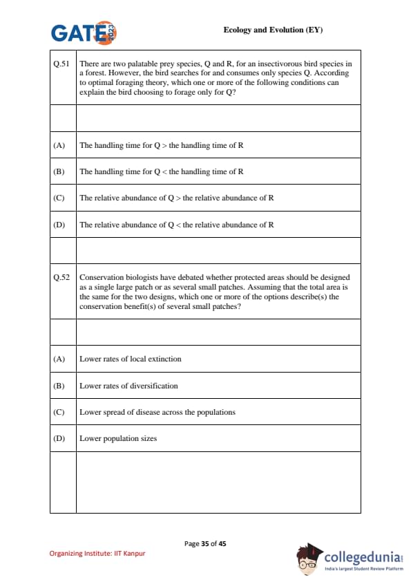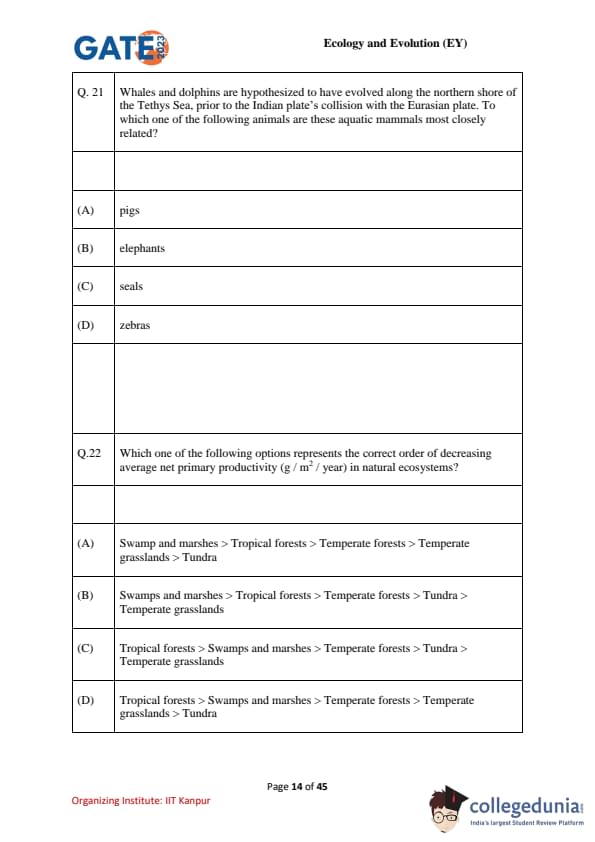 | GATE 2023 Ecology and Evolution Question Paper with Solutions | Download | Check Solutions |