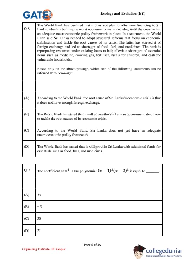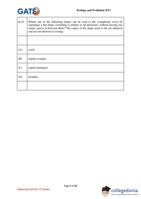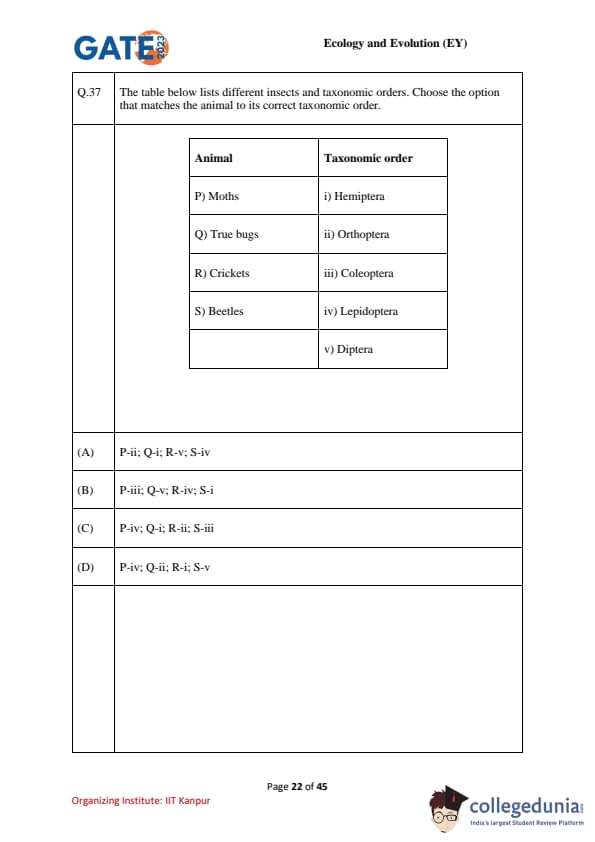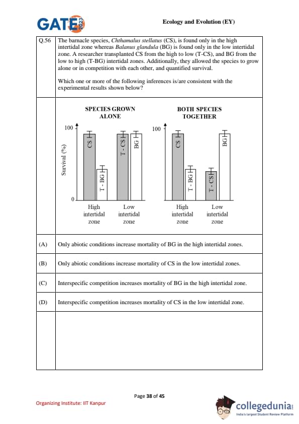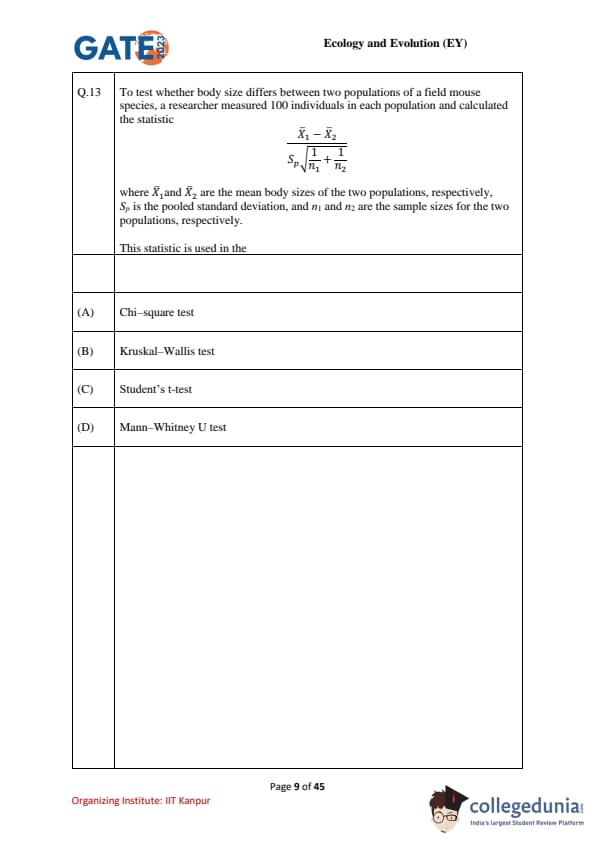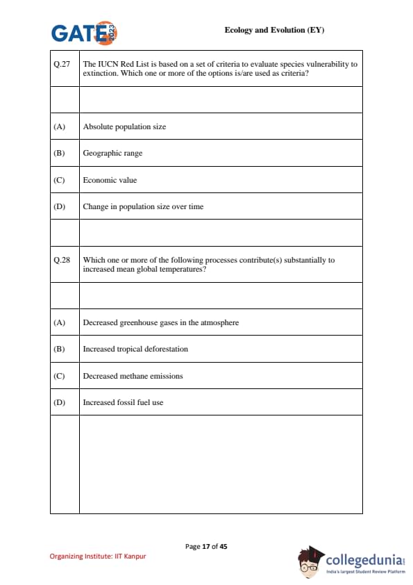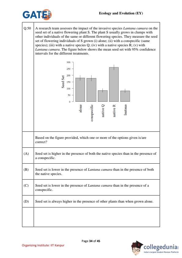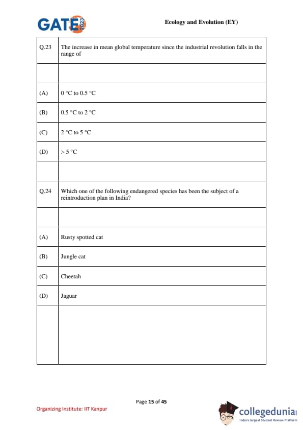 | GATE 2023 Ecology and Evolution Question Paper with Solutions | Download | Check Solutions |