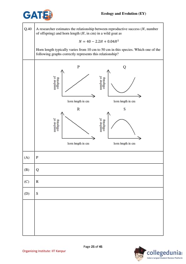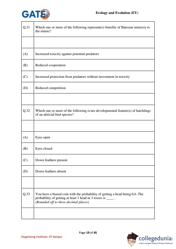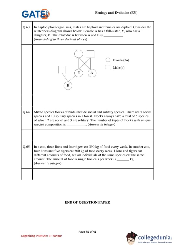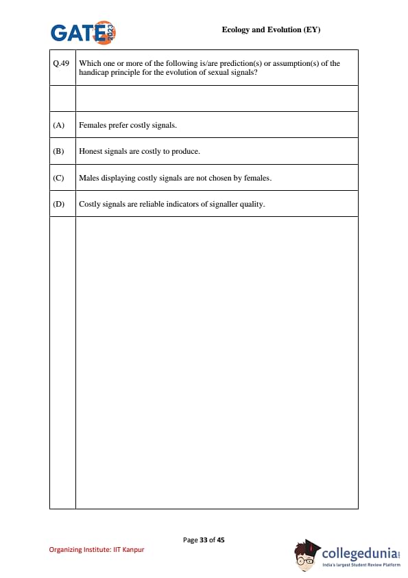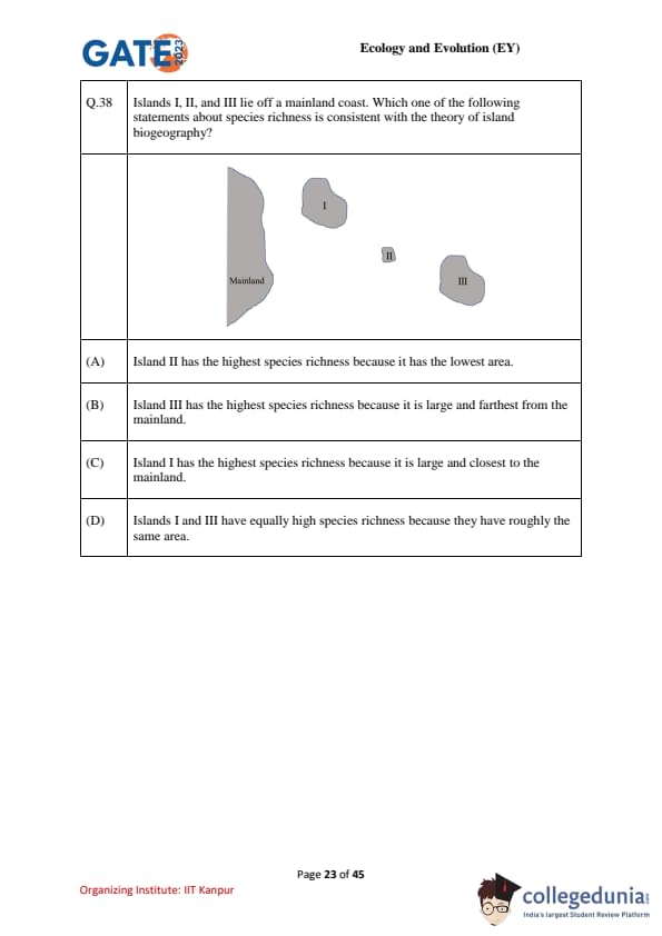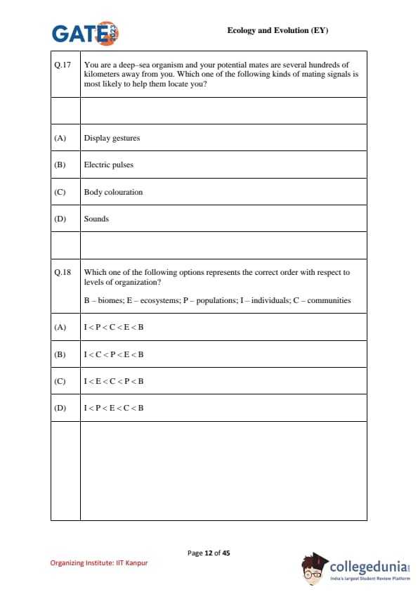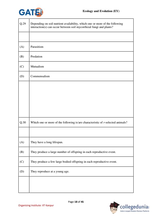 GATE 2023 Ecology and Evolution Question Paper with Solutions PDF