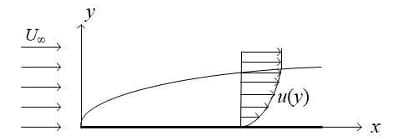 Consider steady incompressible flow of a Newtonian fluid over a horizontal flat plate, as shown in the figure. The boundary layer thickness is proportional to