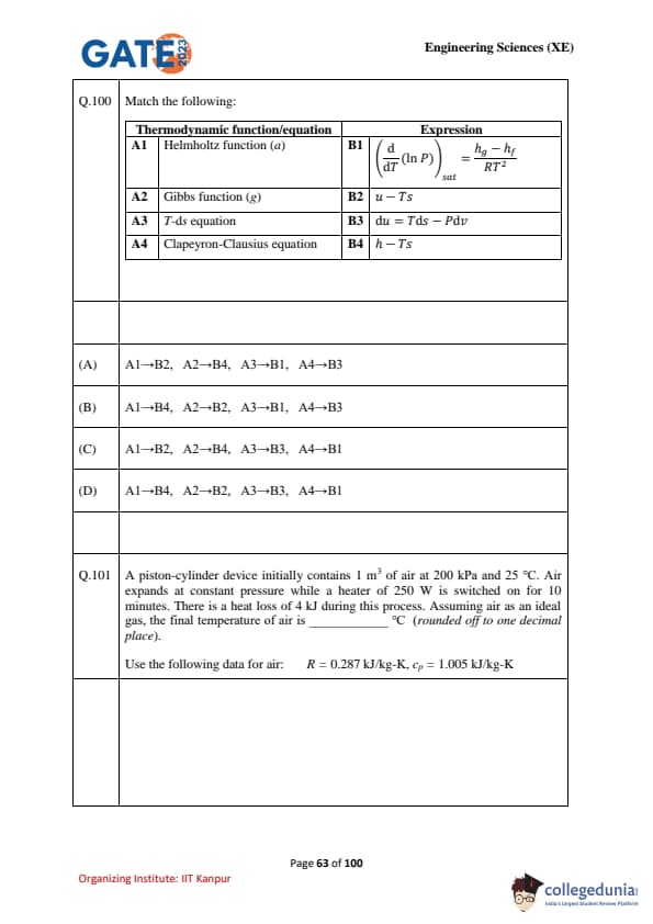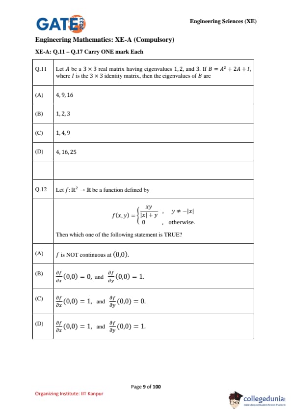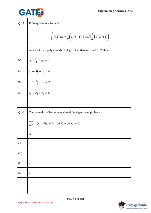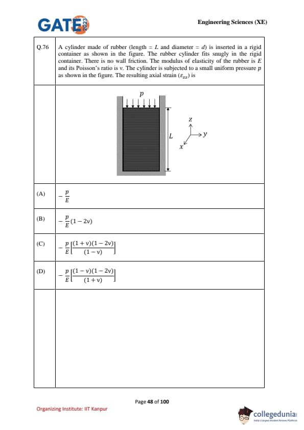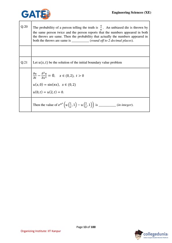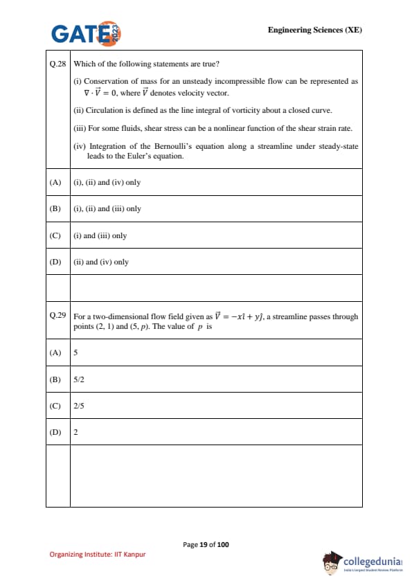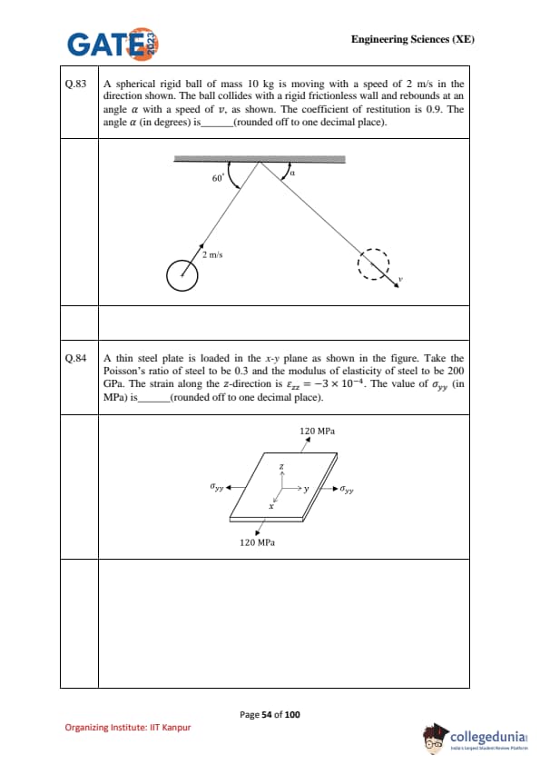 | GATE 2023 Engineering Sciences Question Paper with Solutions | Download | Check Solutions |