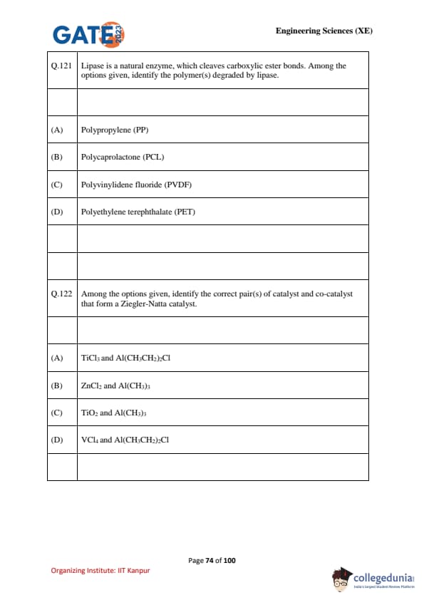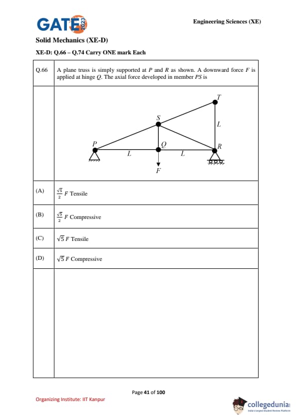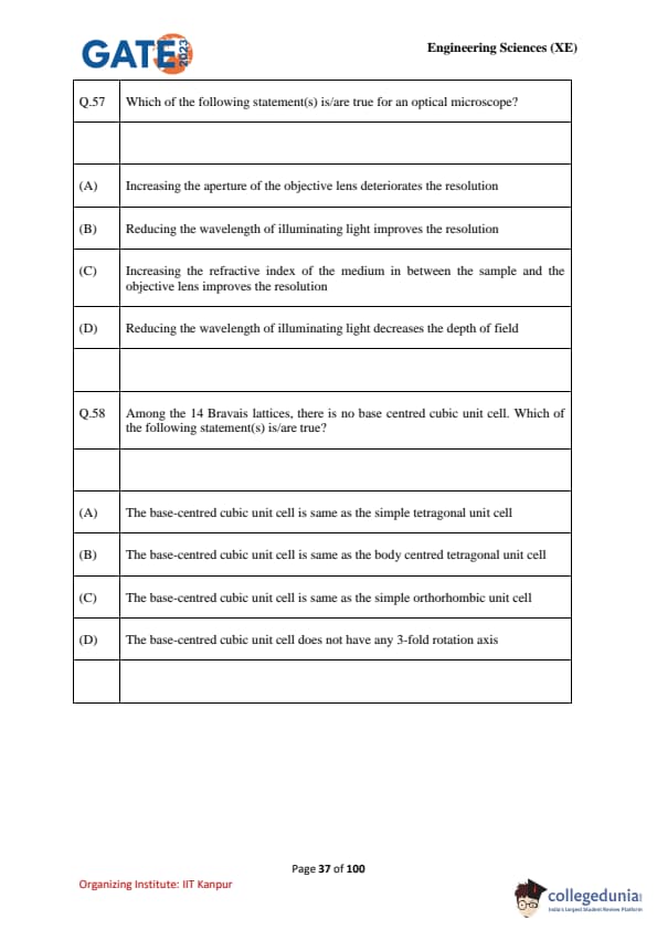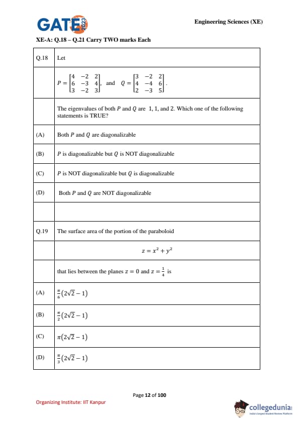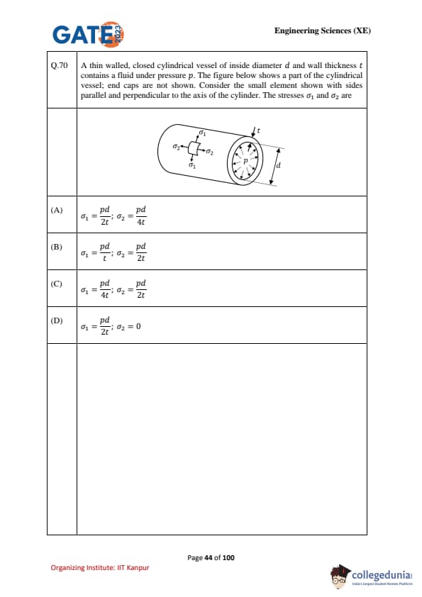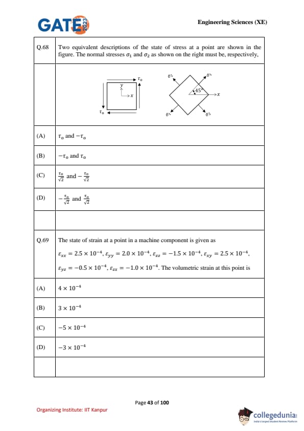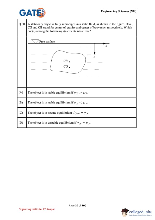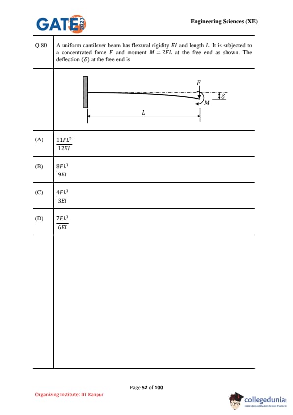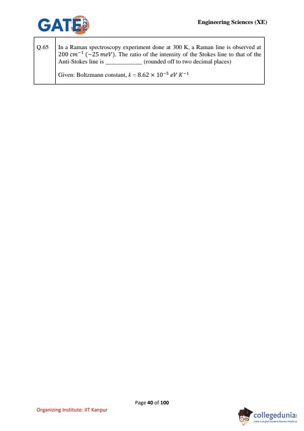 GATE 2023 Engineering Sciences Question Paper PDF is now available here for download. IIT Kanpur conducted GATE 2023 Engineering Sciences exam on February 11, 2023 in the Forenoon Session from 09:30 AM to 12:30 PM. Students have to answer 65 questions in GATE 2023 Engineering Sciences Question Paper carrying a total weightage of 100 marks. 10 questions are from the General Aptitude section and 55 questions are from Core Discipline.