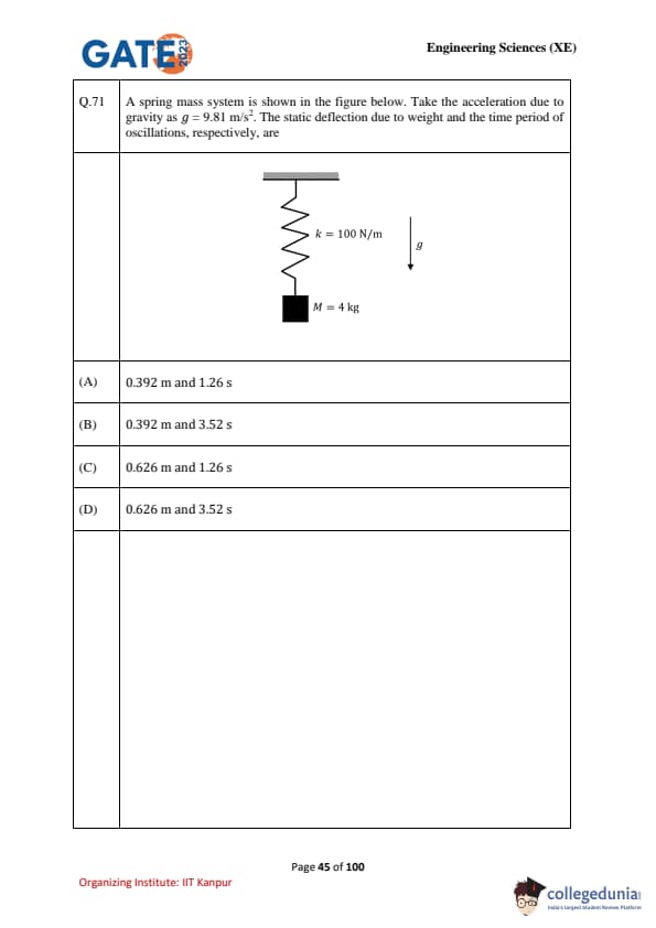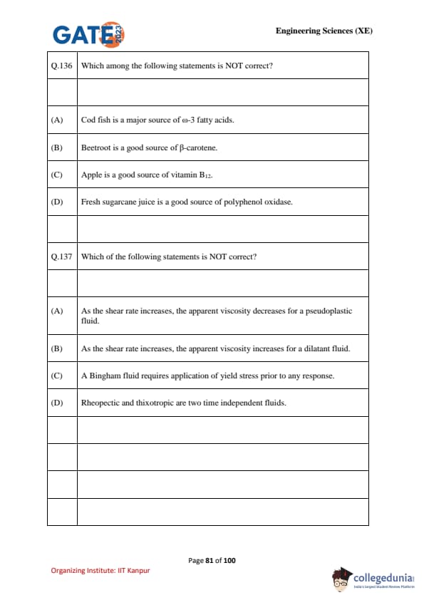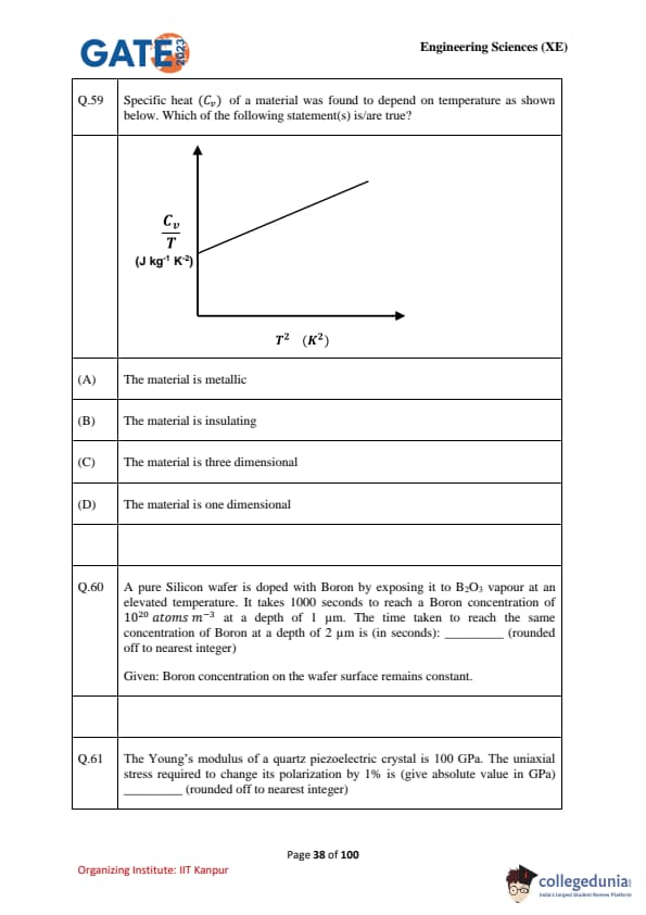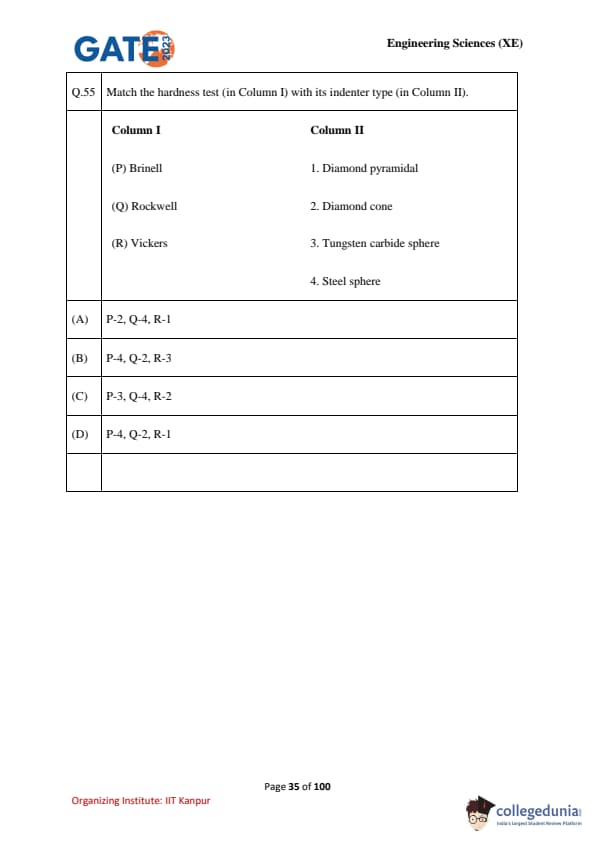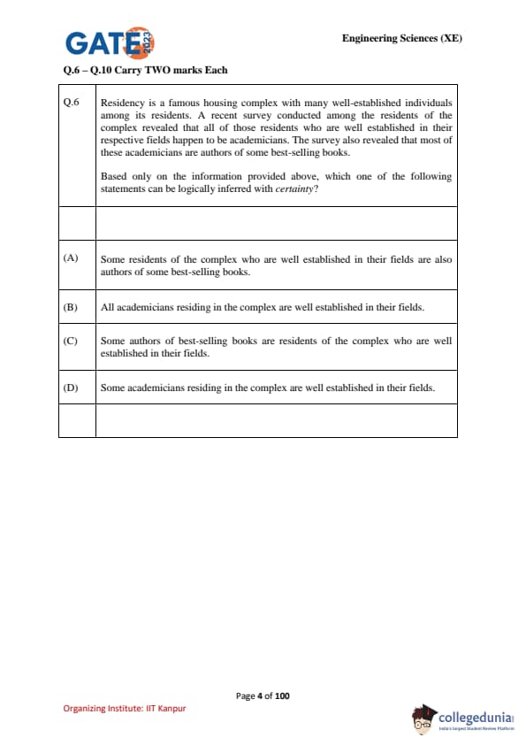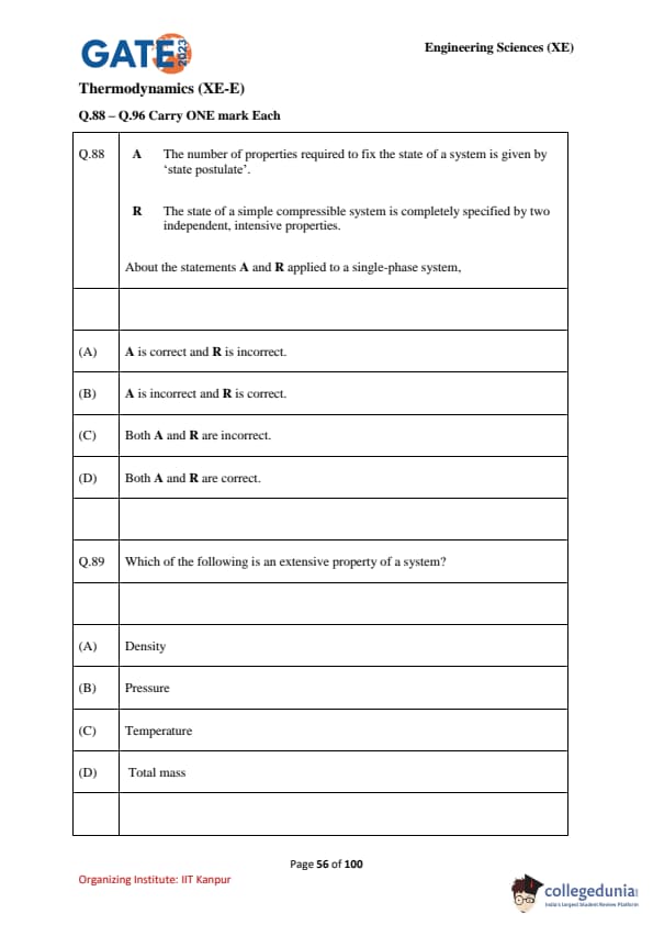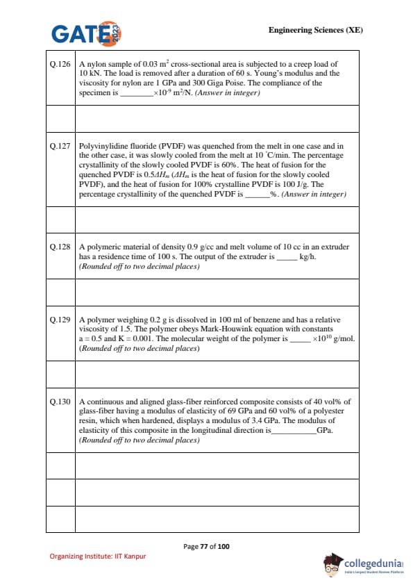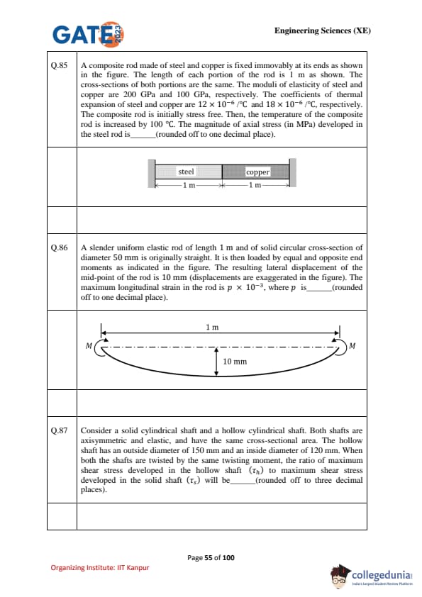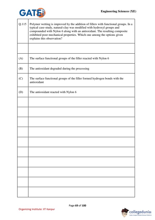 GATE 2023 Engineering Sciences Question Paper PDF is now available here for download. IIT Kanpur conducted GATE 2023 Engineering Sciences exam on February 11, 2023 in the Forenoon Session from 09:30 AM to 12:30 PM. Students have to answer 65 questions in GATE 2023 Engineering Sciences Question Paper carrying a total weightage of 100 marks. 10 questions are from the General Aptitude section and 55 questions are from Core Discipline.