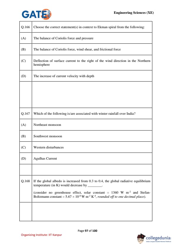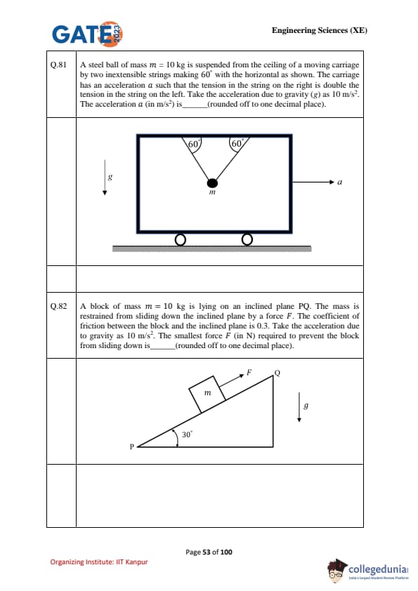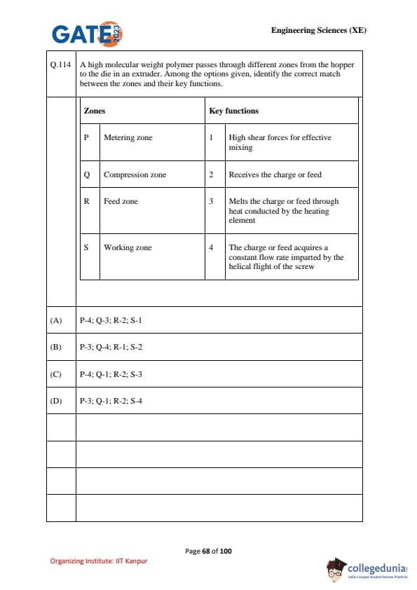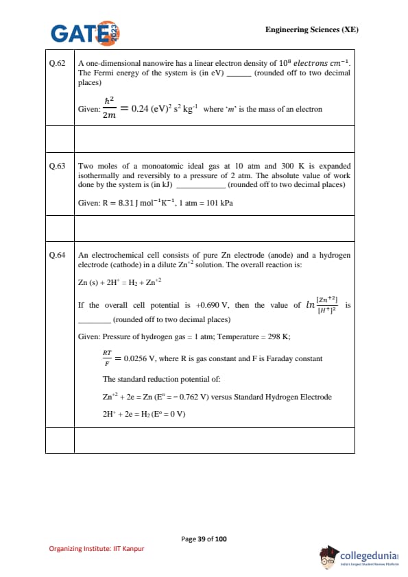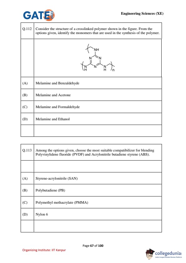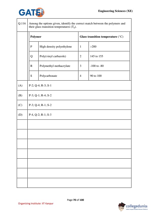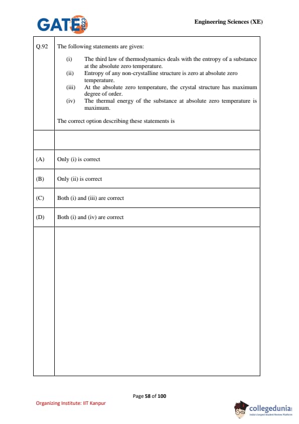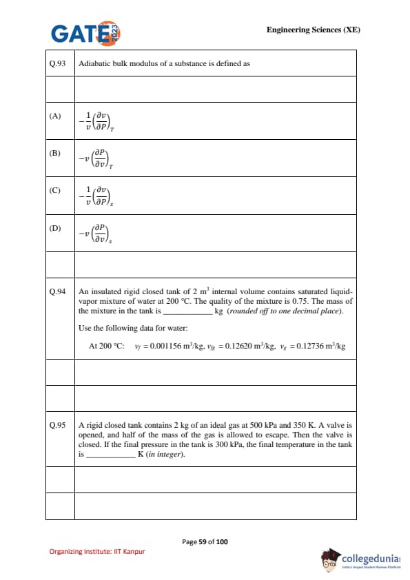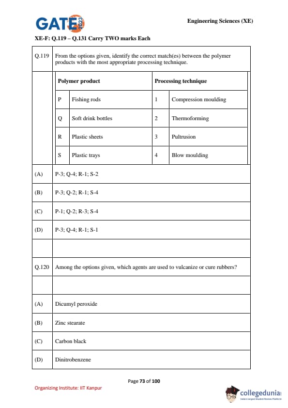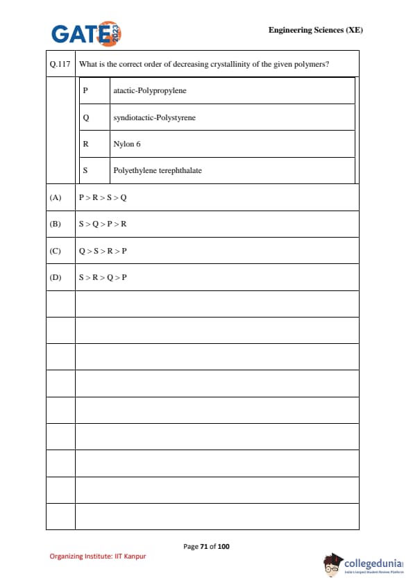GATE 2023 Engineering Sciences Question Paper PDF is now available here for download. IIT Kanpur conducted GATE 2023 Engineering Sciences exam on February 11, 2023 in the Forenoon Session from 09:30 AM to 12:30 PM. Students have to answer 65 questions in GATE 2023 Engineering Sciences Question Paper carrying a total weightage of 100 marks. 10 questions are from the General Aptitude section and 55 questions are from Core Discipline.