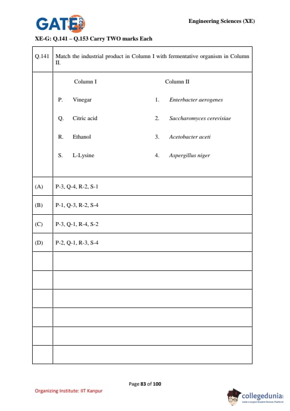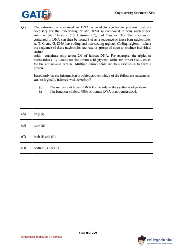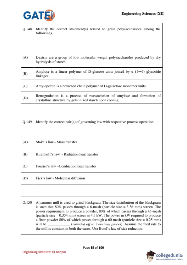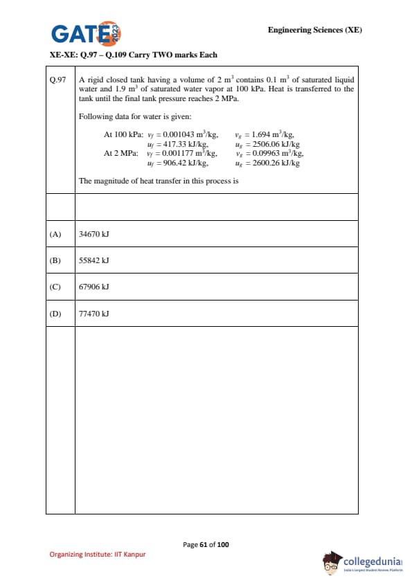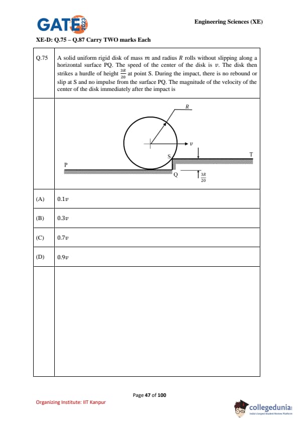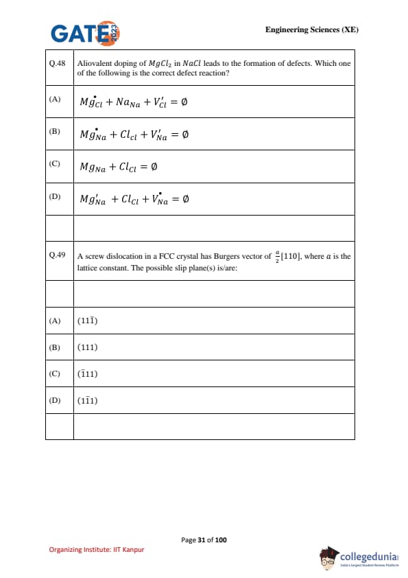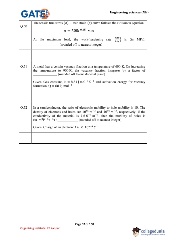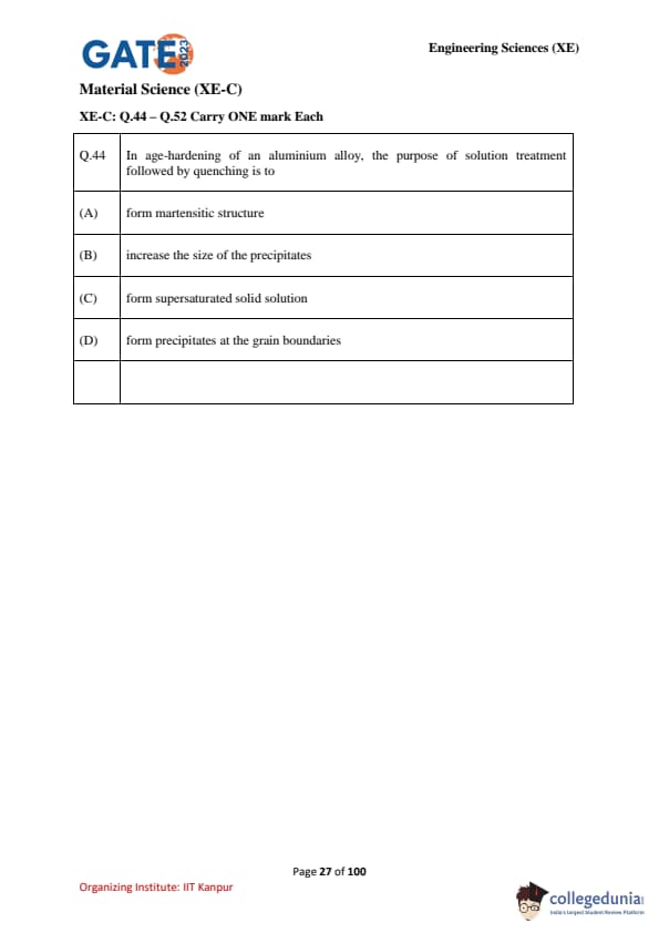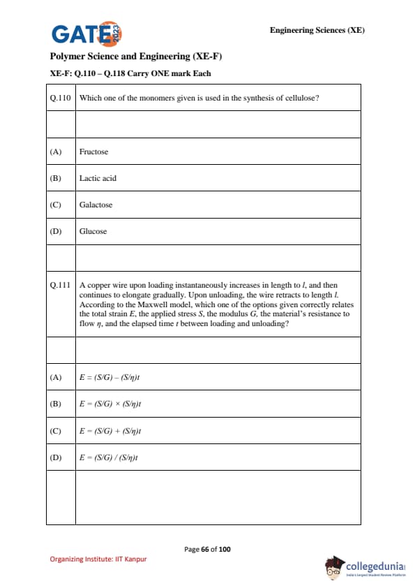 GATE 2023 Engineering Sciences Question Paper PDF is now available here for download. IIT Kanpur conducted GATE 2023 Engineering Sciences exam on February 11, 2023 in the Forenoon Session from 09:30 AM to 12:30 PM. Students have to answer 65 questions in GATE 2023 Engineering Sciences Question Paper carrying a total weightage of 100 marks. 10 questions are from the General Aptitude section and 55 questions are from Core Discipline.