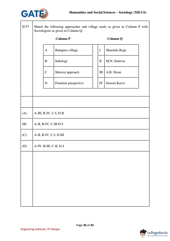 GATE 2023 Humanities and Social Sciences – Sociology (XH-C6) Question Paper with Solutions PDF