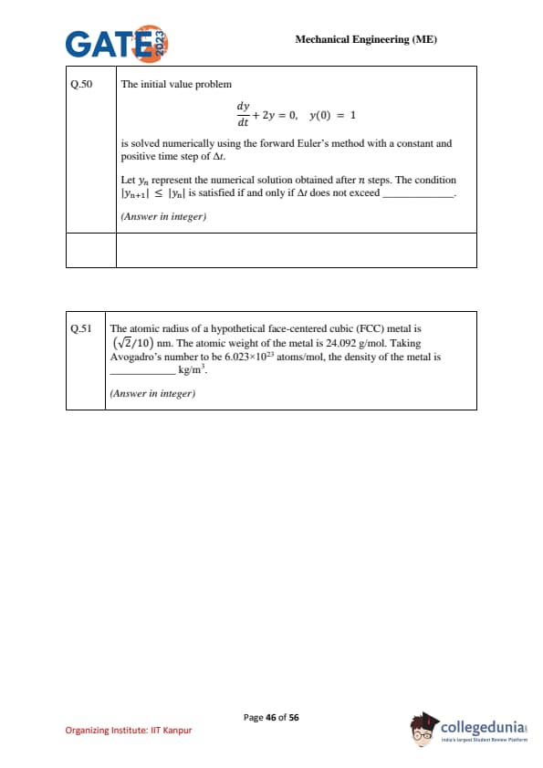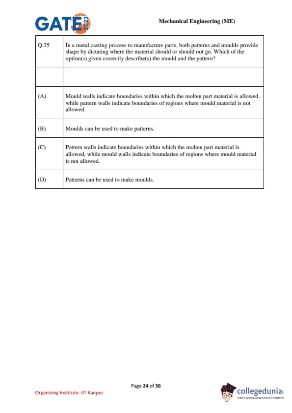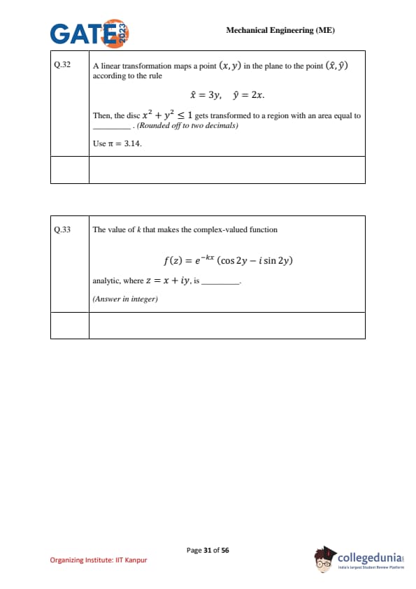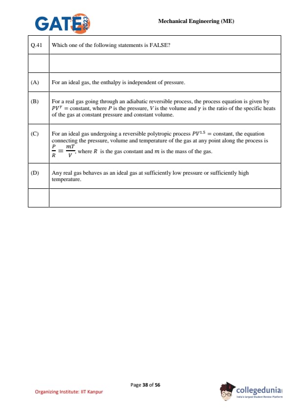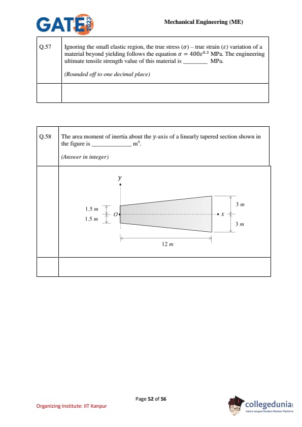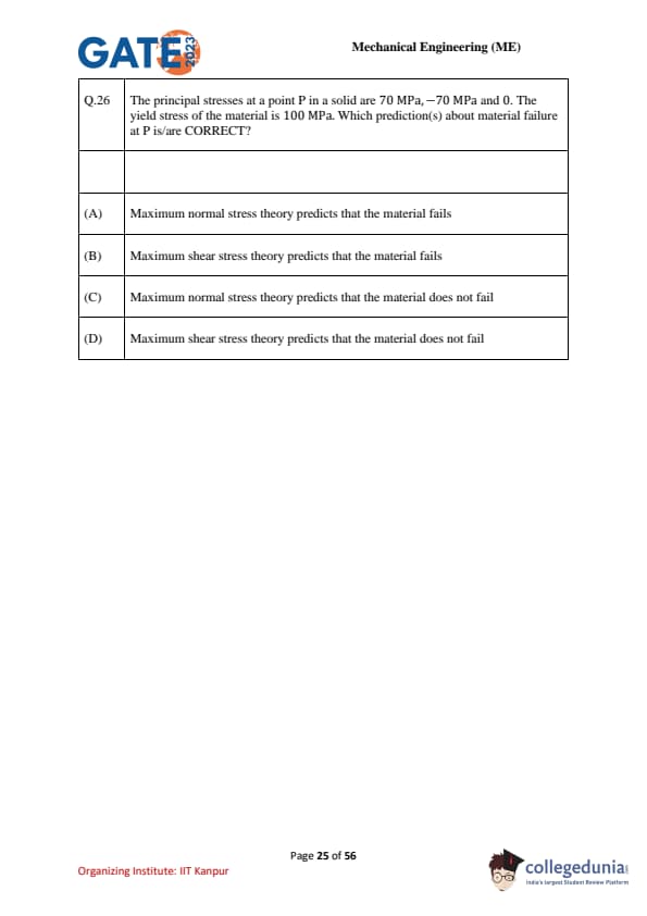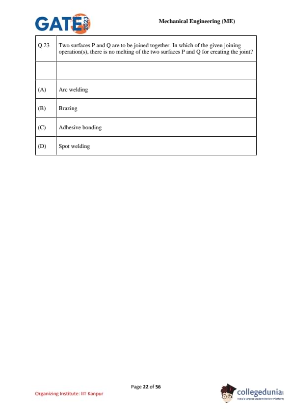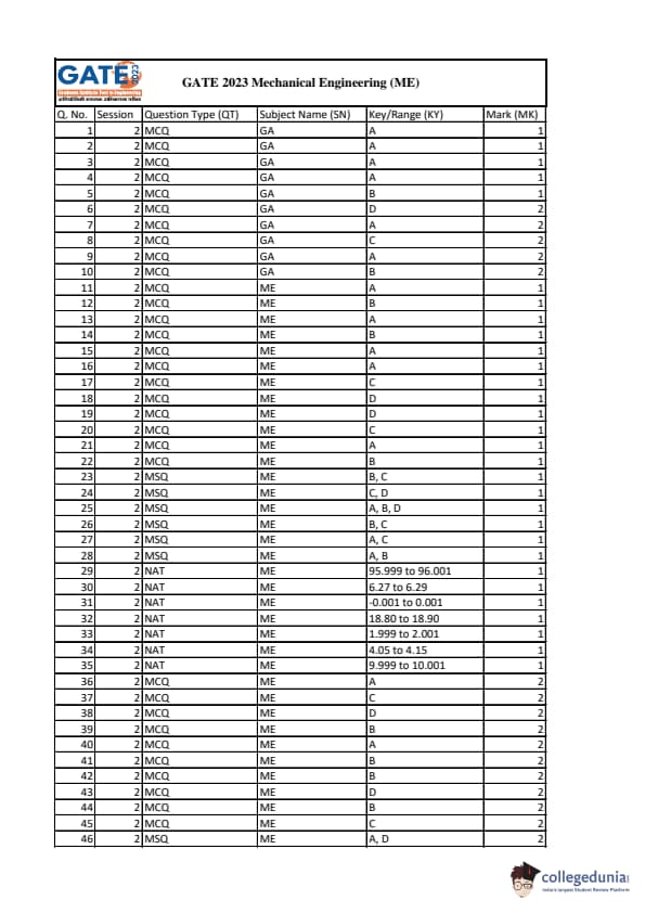 | GATE 2023 Mechanical Engineering (ME) Question Paper with Solutions | Check Solutions |