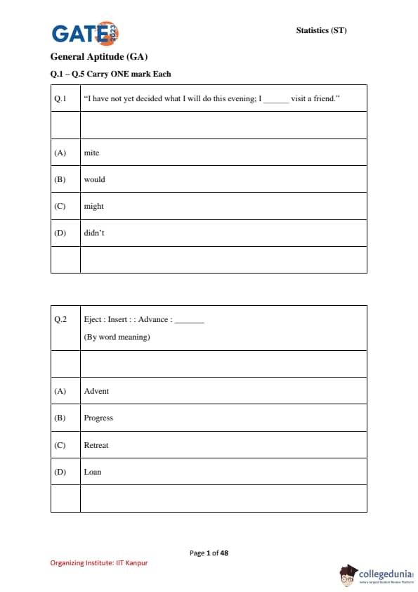 | Previous Year GATE Statistics Question Papers | GATE 2023 Statistics Paper Analysis |