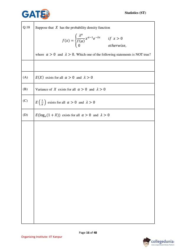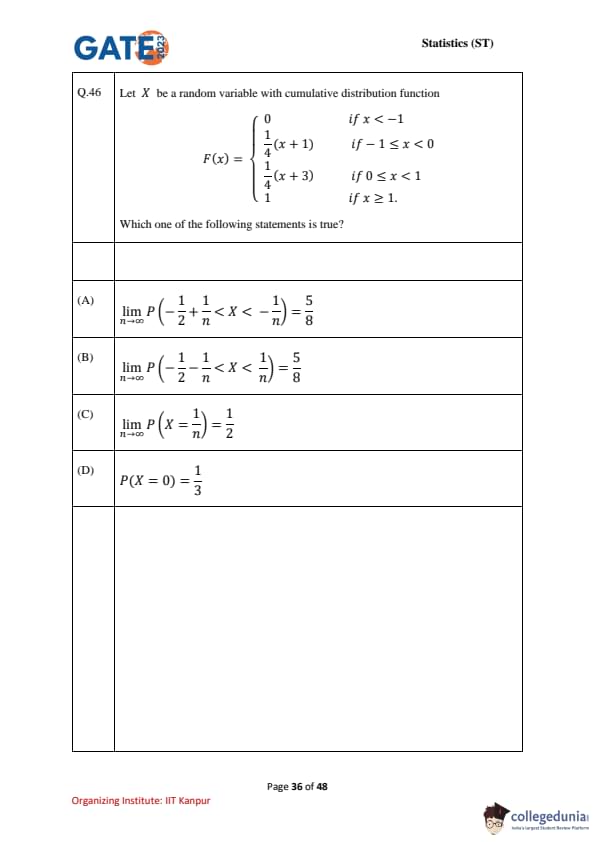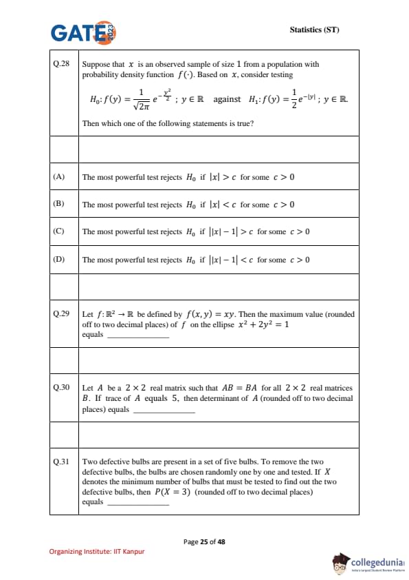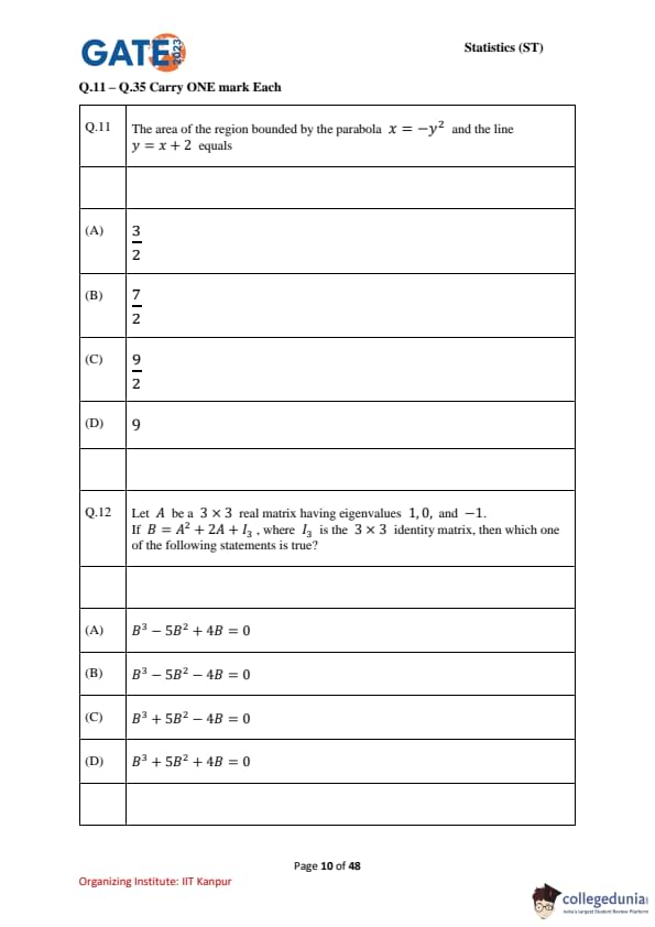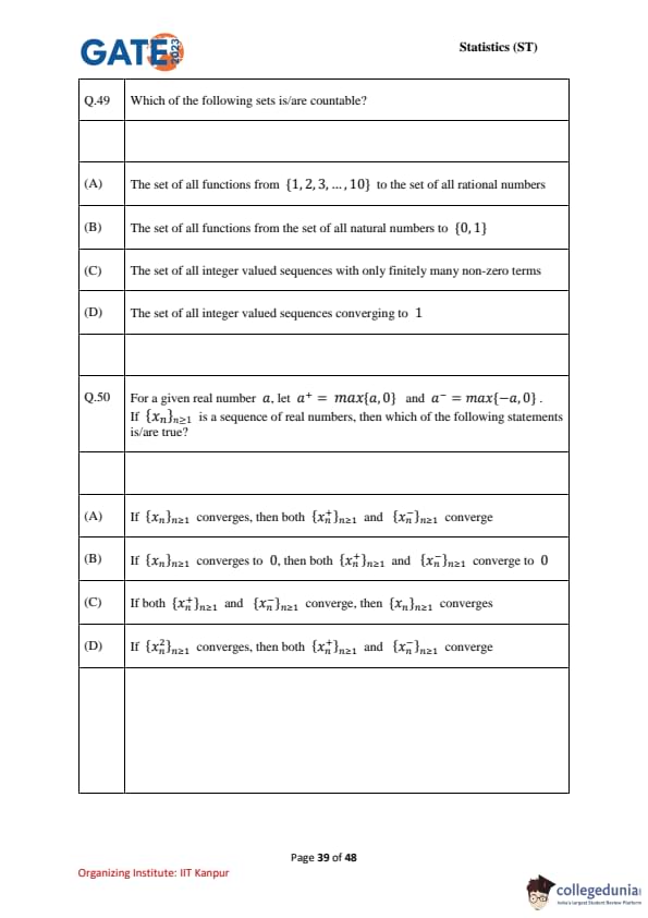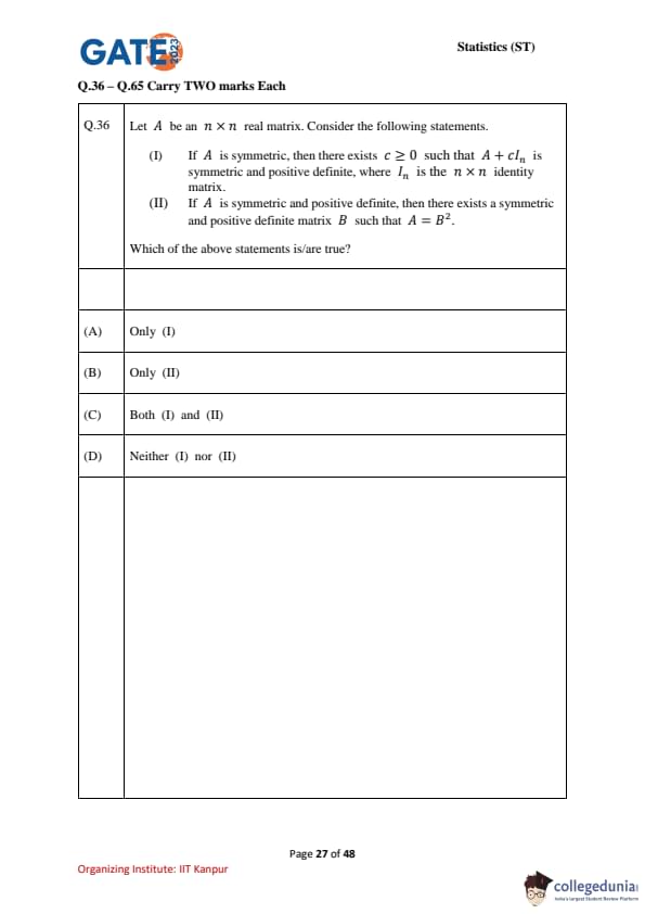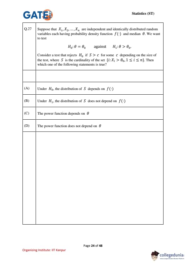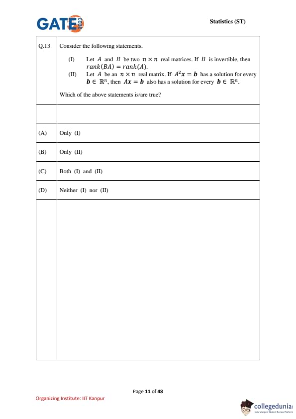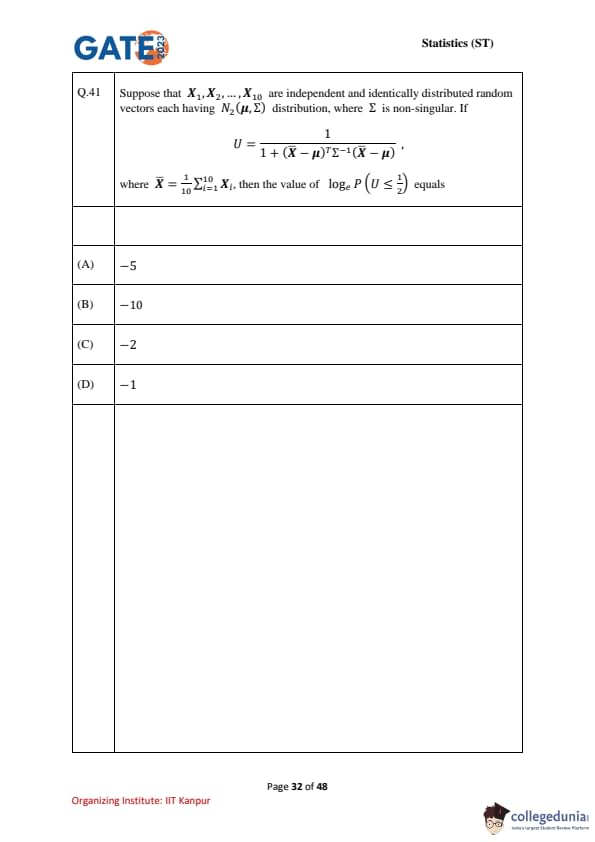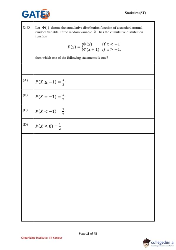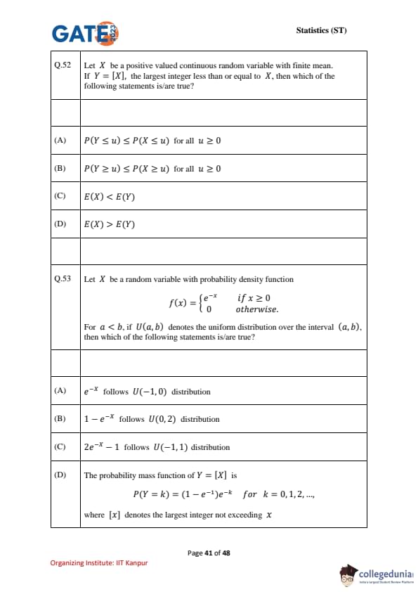 | GATE 2023 Statistics (ST) Question Paper with Solutions | Check Solutions |