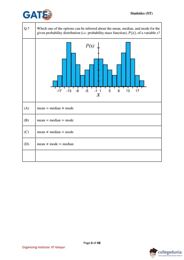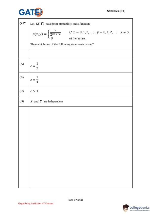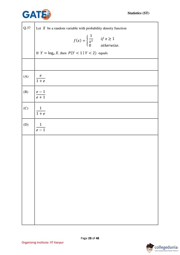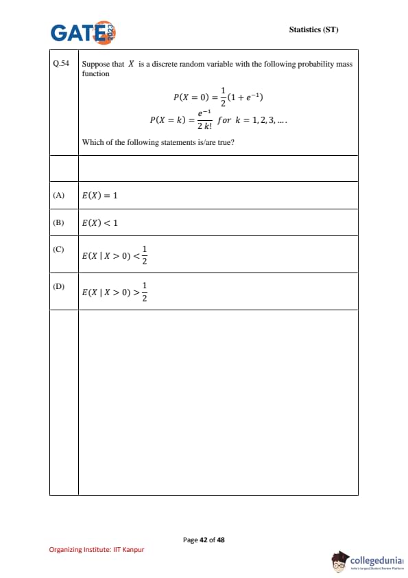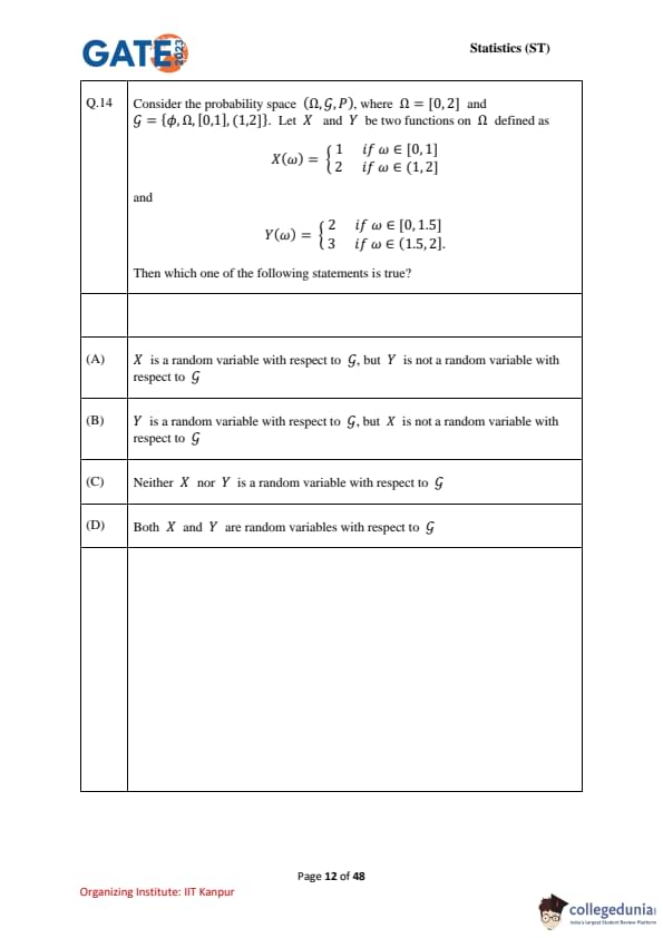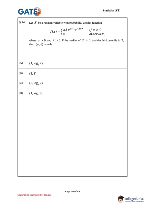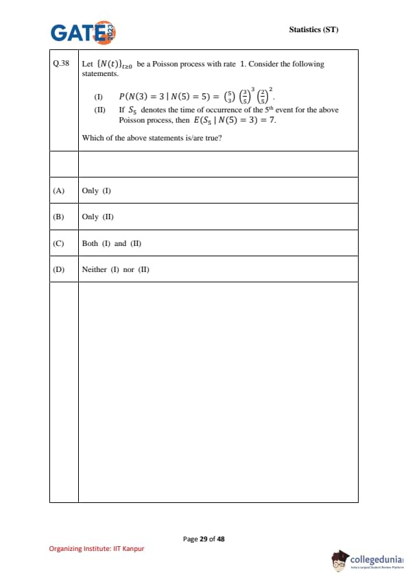 GATE 2023 Statistics (ST) Question Paper with Solutions PDF