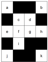 A line of symmetry is defined as a line that divides a figure into two parts in a way such that each part is a mirror image of the other part about that line. The figure below consists of 20 unit squares arranged as shown. In addition to the given black squares, up to 5 more may be coloured black. Which one among the following options depicts the minimum number of boxes that must be coloured black to achieve two lines of symmetry? (The figure is representative)