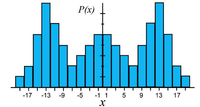 Which one of the options can be inferred about the mean, median, and mode for the given probability distribution (i.e. probability mass function), \(P(x)\), of a variable \(x\)?