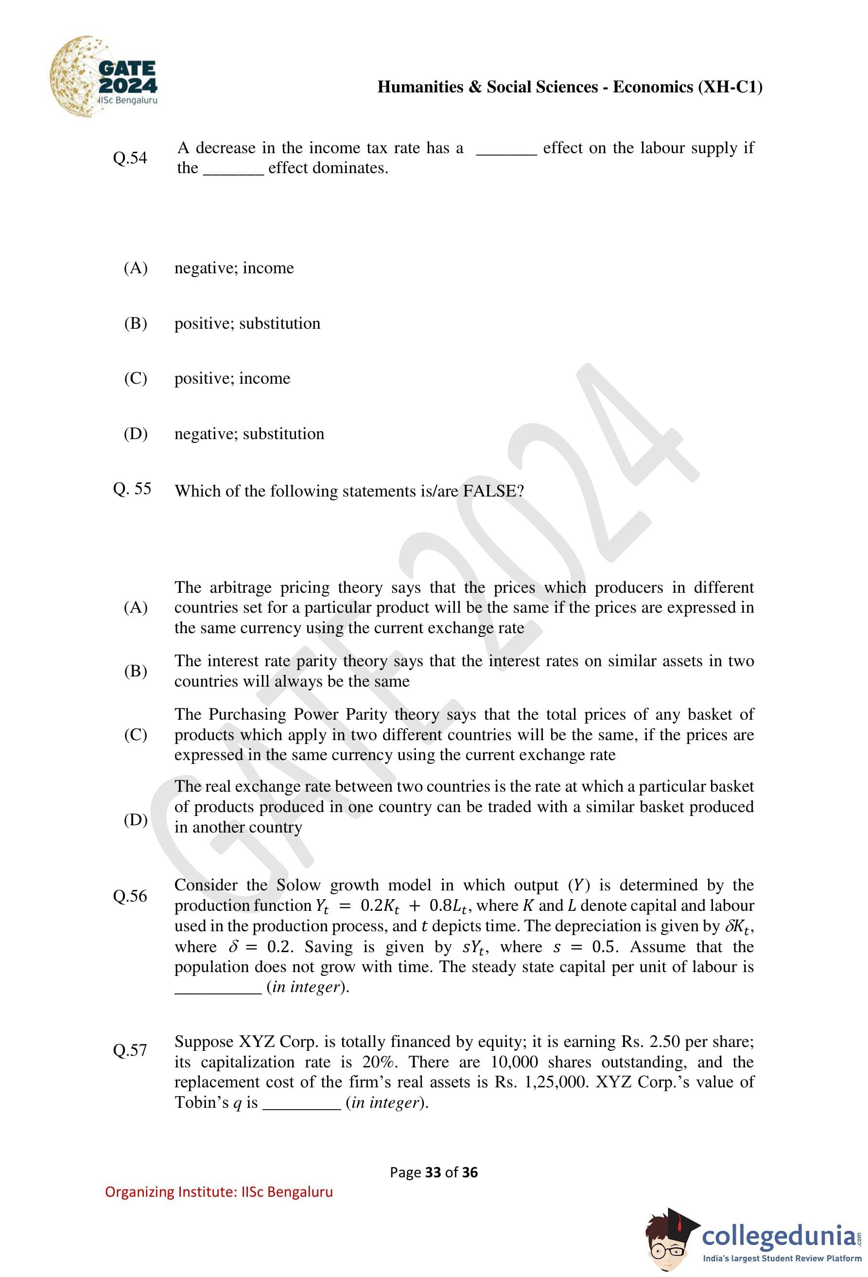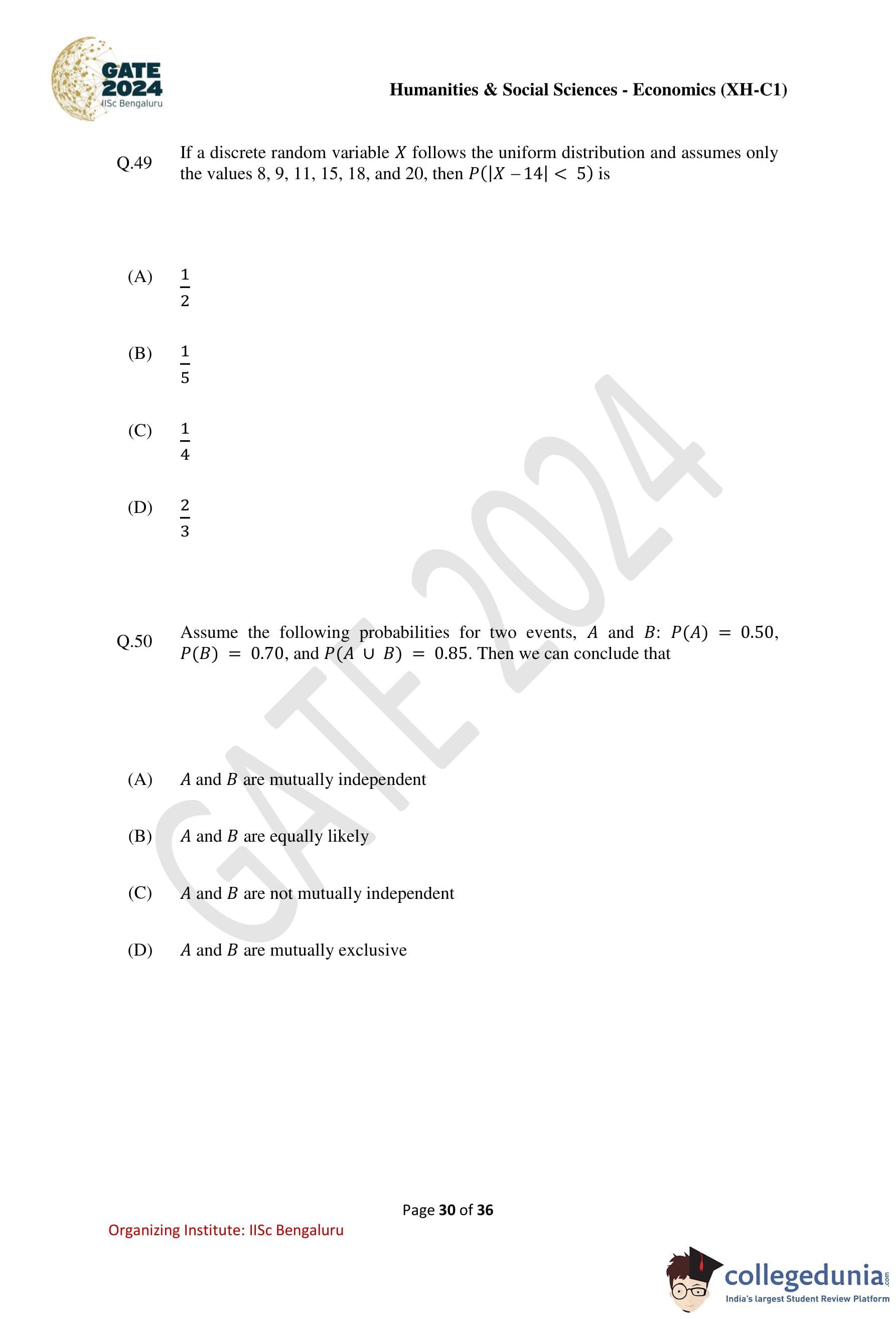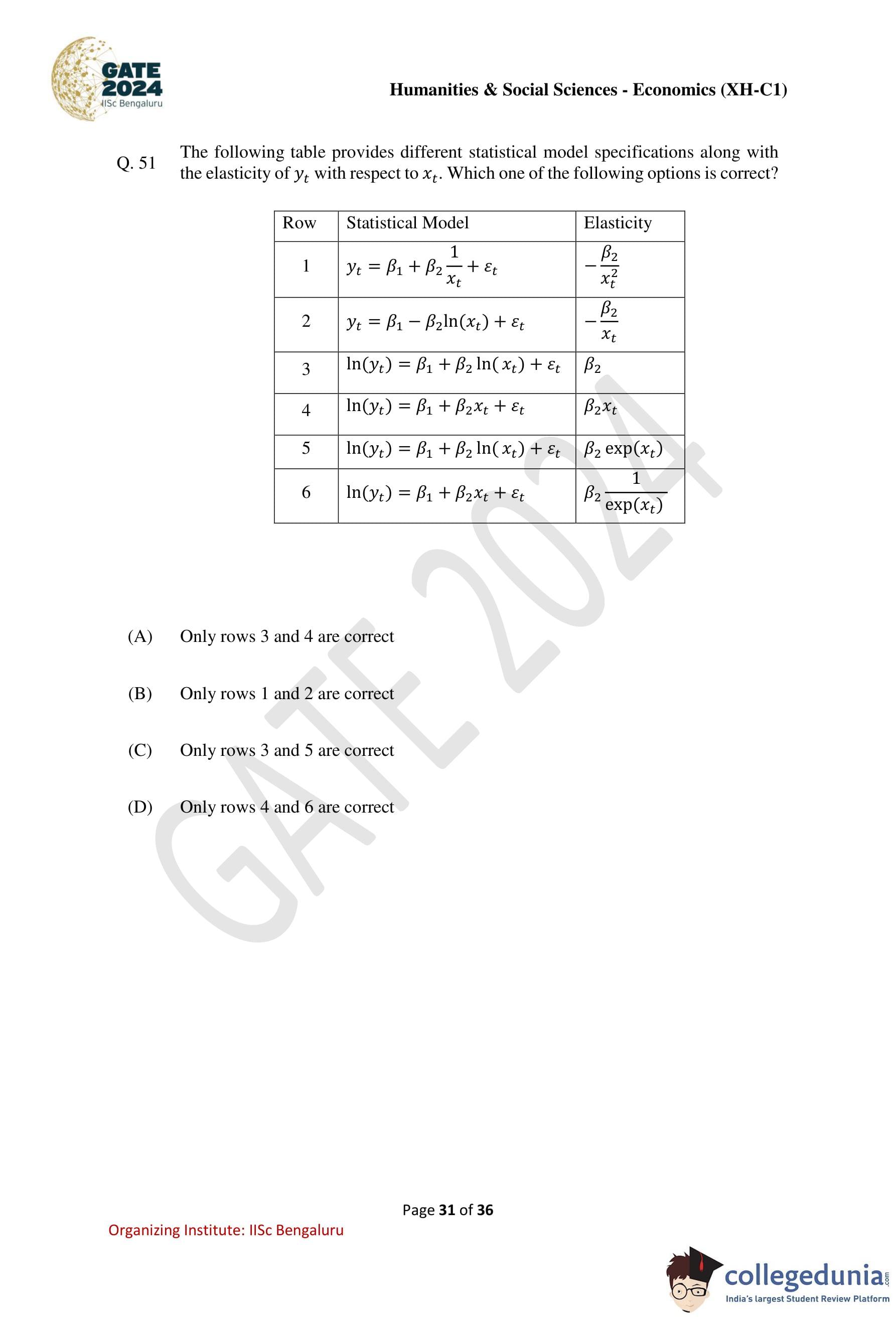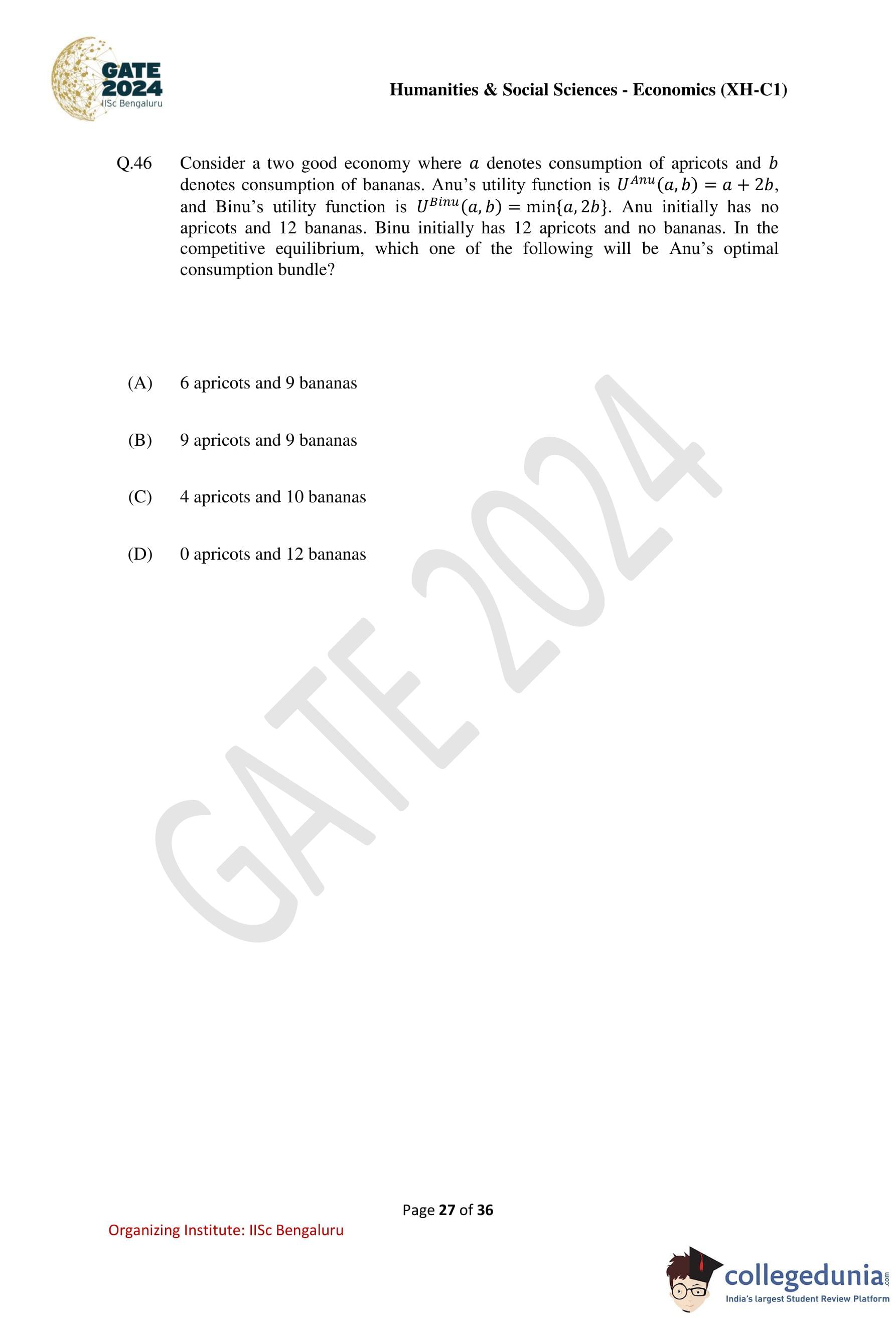 GATE 2024 Economics (XH-C1) Question Paper Solutions
