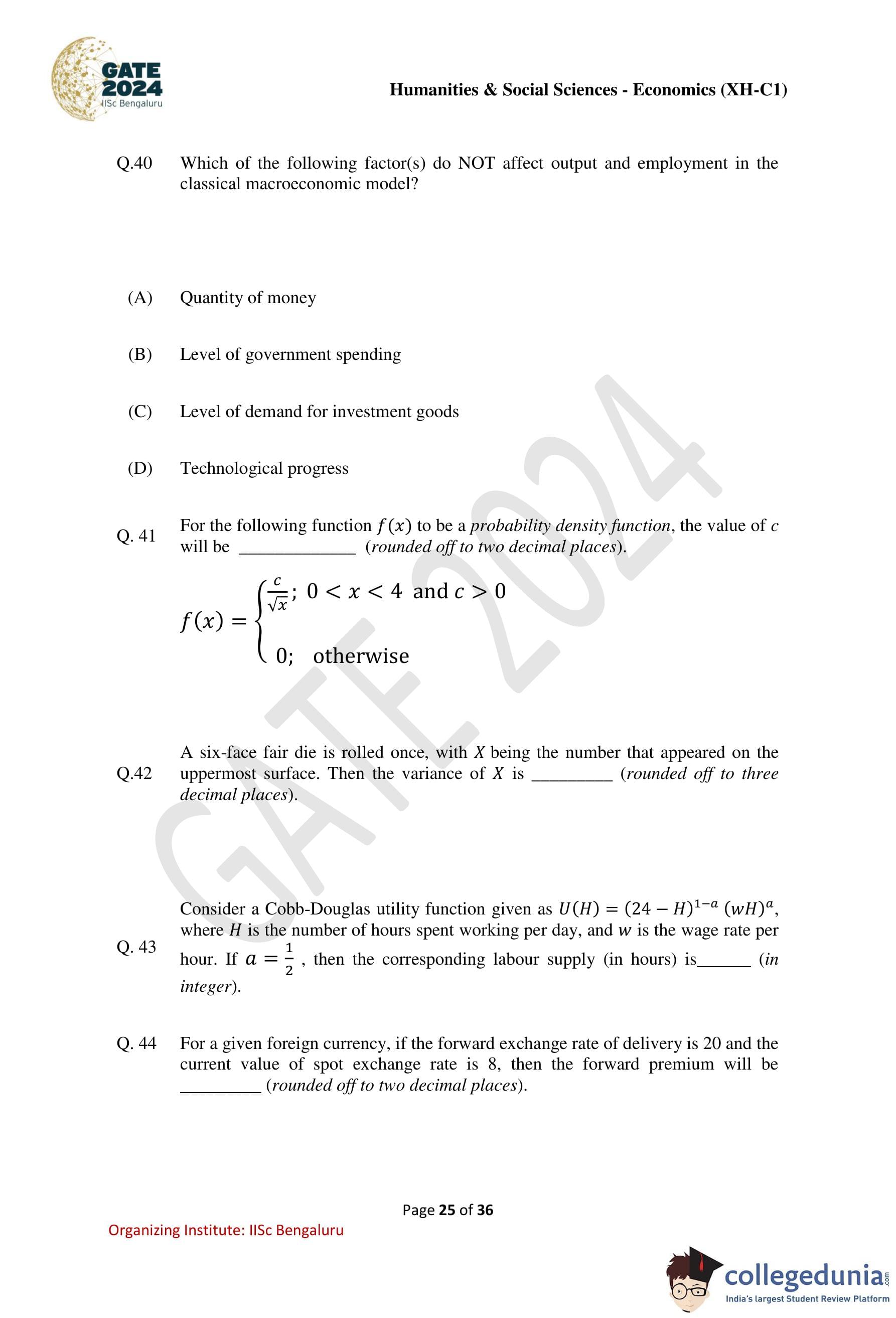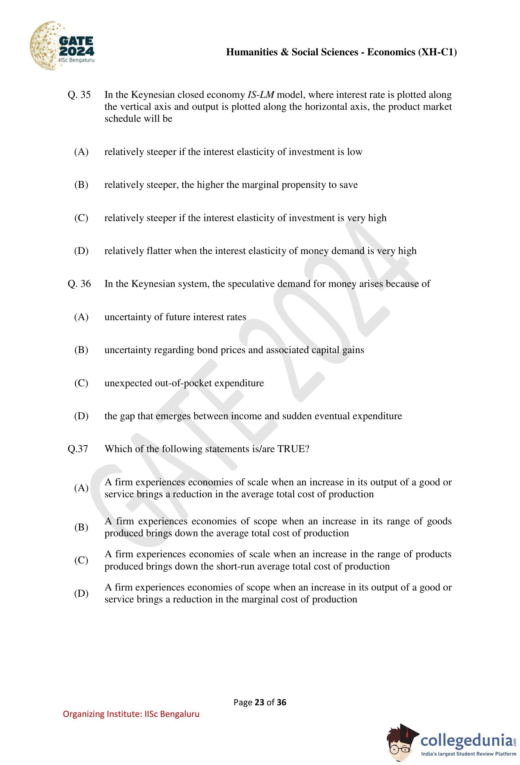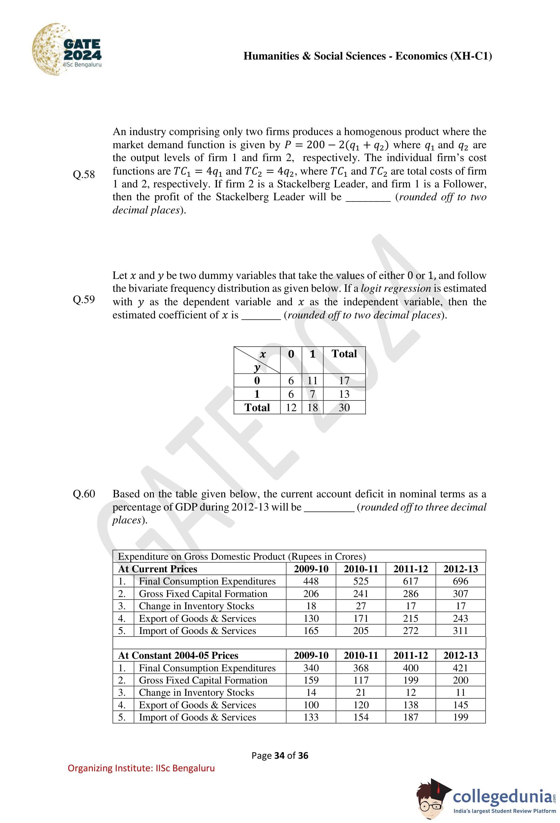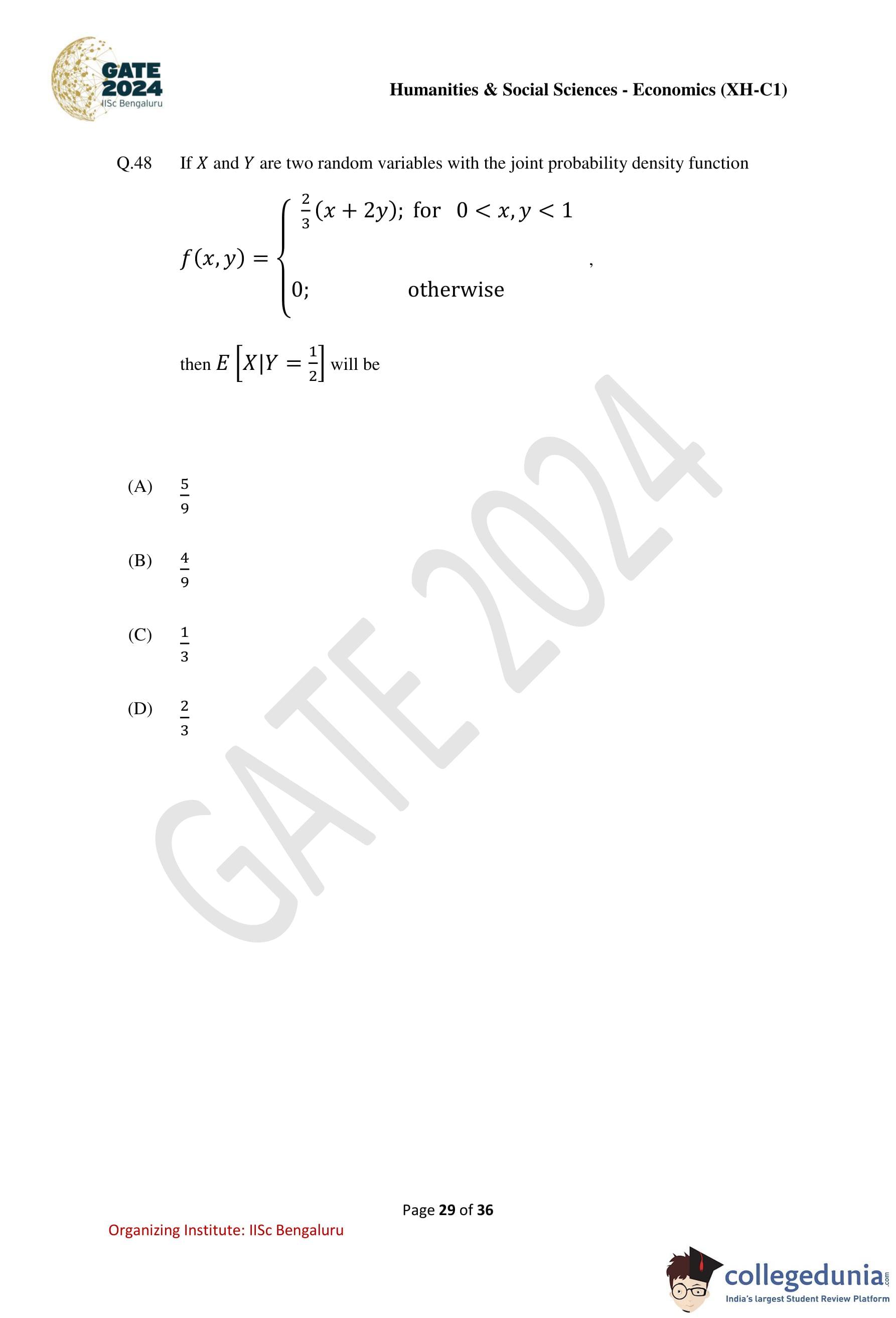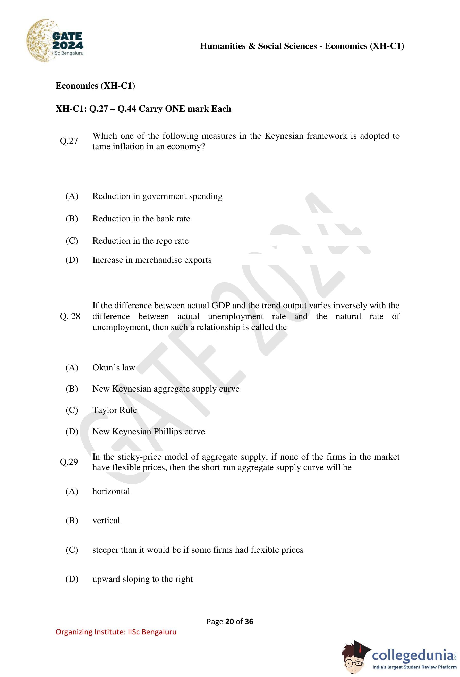 GATE 2024 Economics (XH-C1) Question Paper Solutions