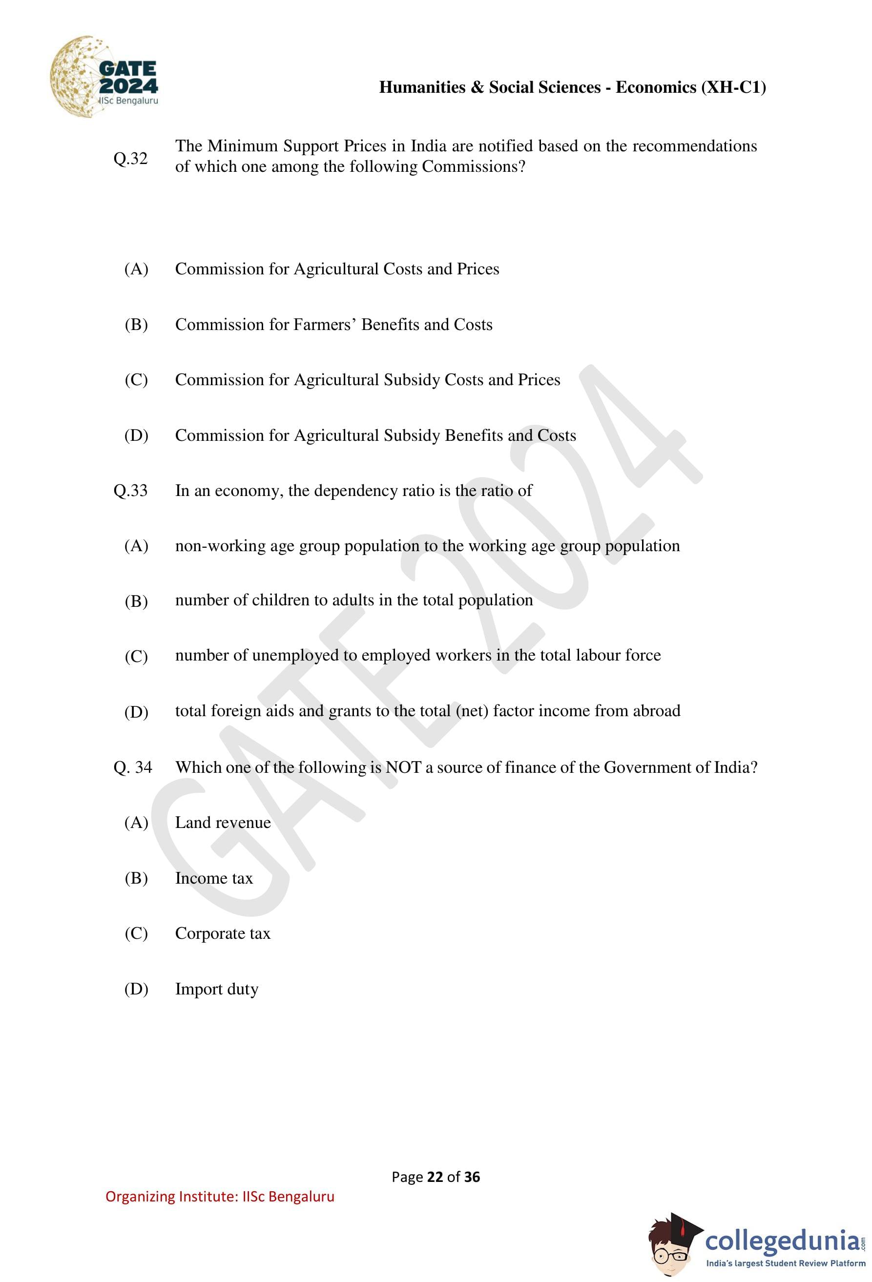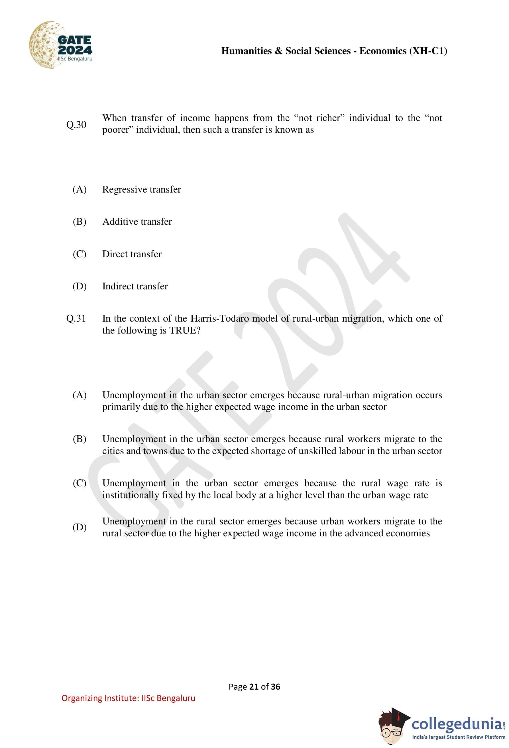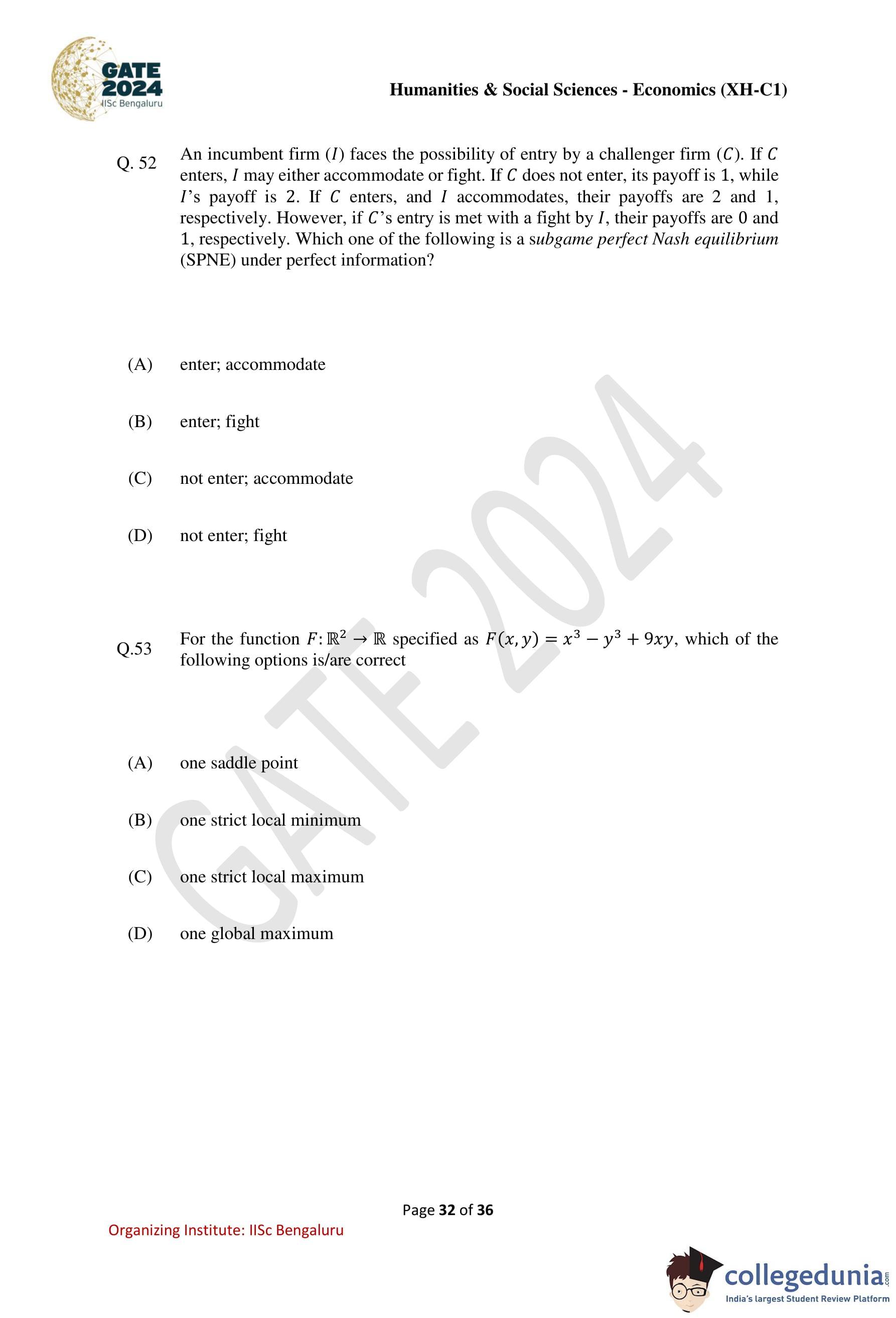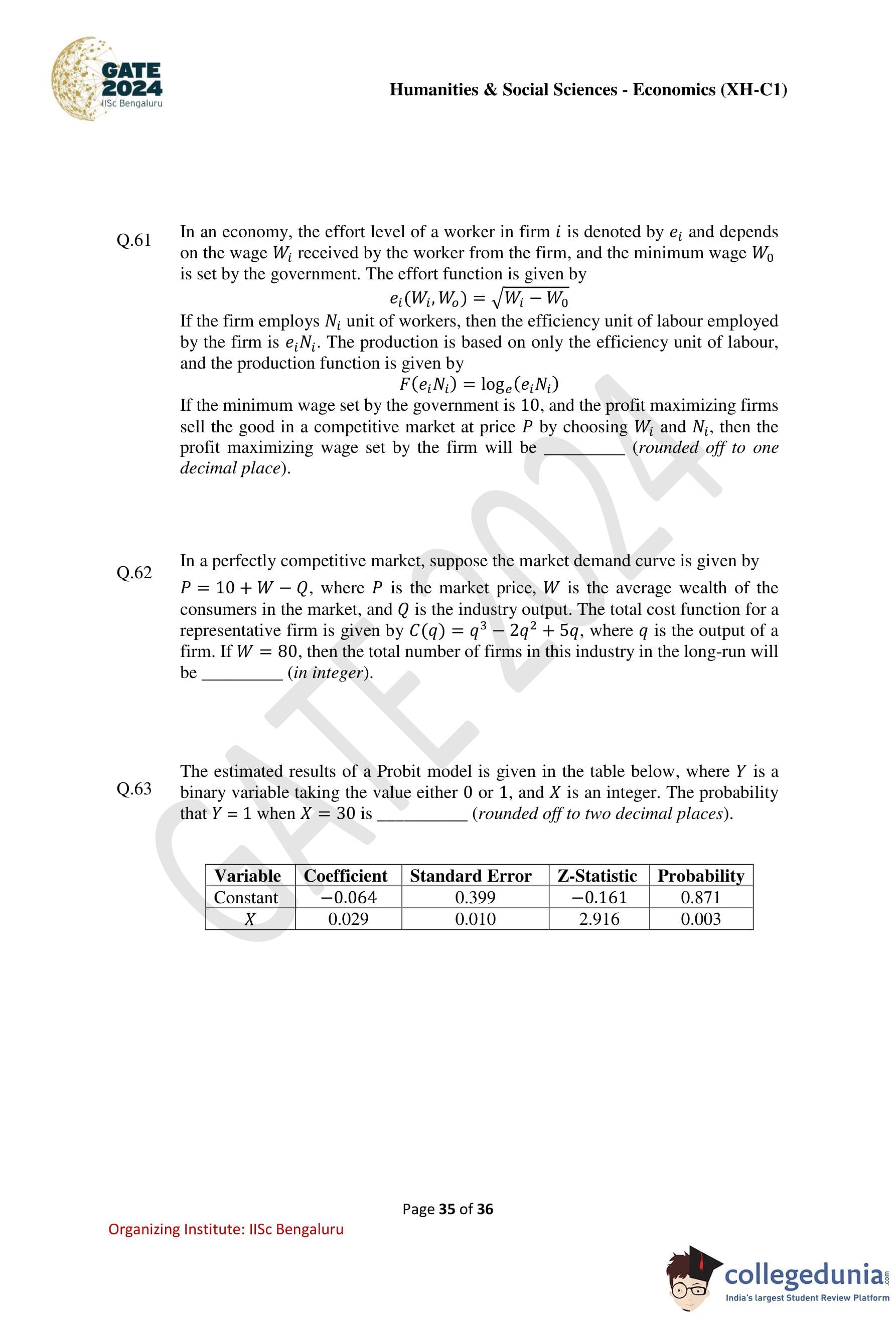 GATE 2024 Economics (XH-C1) Question Paper Solutions
